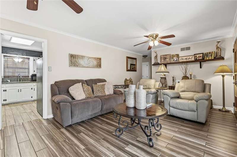Welcome to this beautifully updated 3-bedroom, 2-bath home offering 1,528 sq. ft. of living space on a spacious 0.77-acre lot in the desirable Skyland Park neighborhood. Inside, you'll love the brand-new tile flooring throughout, fresh blinds, a large living room, and a spacious eat-in kitchen with a bonus room off to the side that is great for a home office, playroom, or second living area. One bathroom has been completely renovated with stylish finishes, and a roomy laundry area adds extra convenience. Step outside to enjoy the large covered back patio, wonderful for entertaining. The fenced backyard includes a 26x24 two-car garage/workshop, a 16x8 shed for storage or projects, and a carport large enough for boat storage. With plenty of outdoor space and modern updates inside, this property offers comfort, functionality, and versatility for its next owners.Buyer responsible for verifying all measurements and relevant details.