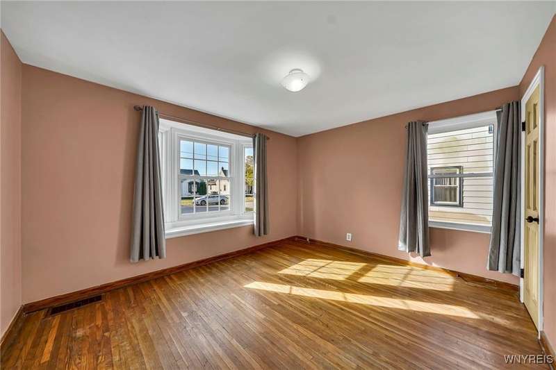 Welcome to this charming Cape Cod offering a comfortable blend of classic character and thoughtful updates. Two bedrooms are conveniently located on the first floor, with a third upstairs for added space and flexibility. The main level features hardwood floors, a bright bay window in the front bedroom, and a cozy eat-in kitchen with a new floor and included appliances. The bathroom has been refreshed with an updated floor as well. Enjoy the inviting three-season sunroom (restored in 2018) overlooking a partially fenced backyard with no rear neighbors, perfect for relaxing or entertaining. Major improvements include a new roof (2019), furnace and central air (2021), driveway (2019), and garage 20'x30' (2018). Additional highlights include replacement windows throughout, six-panel doors, a 2022 refrigerator and stove, and washer and dryer (2017) included. A wonderful opportunity to move right in and add your own finishing touches!