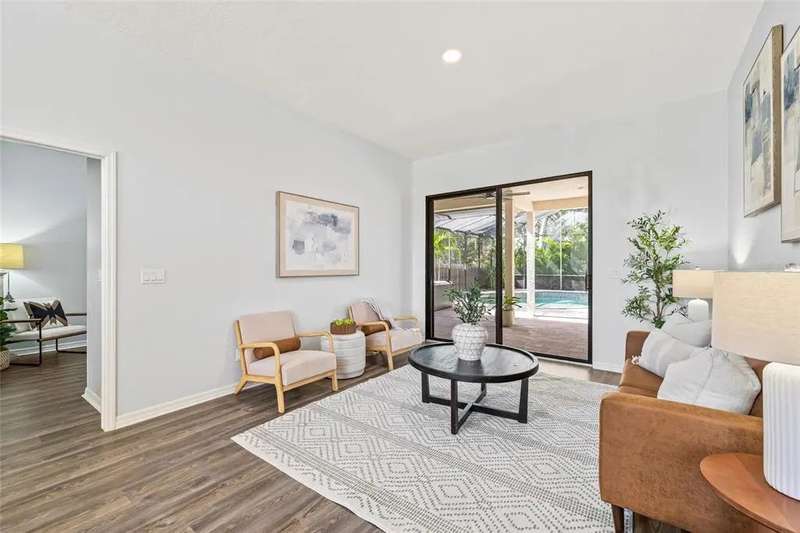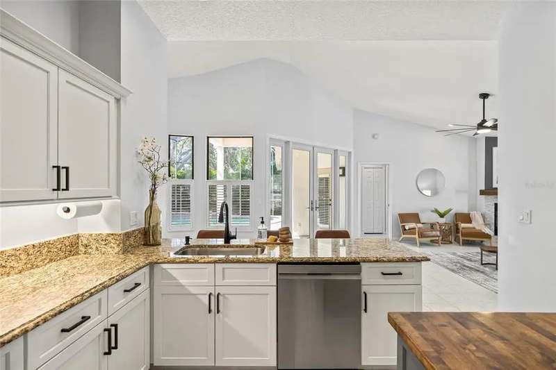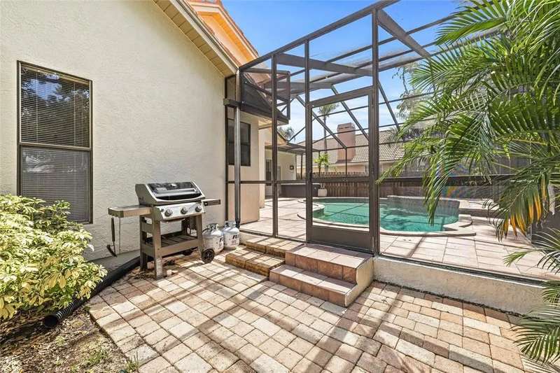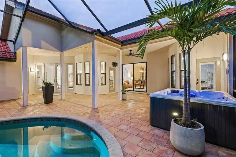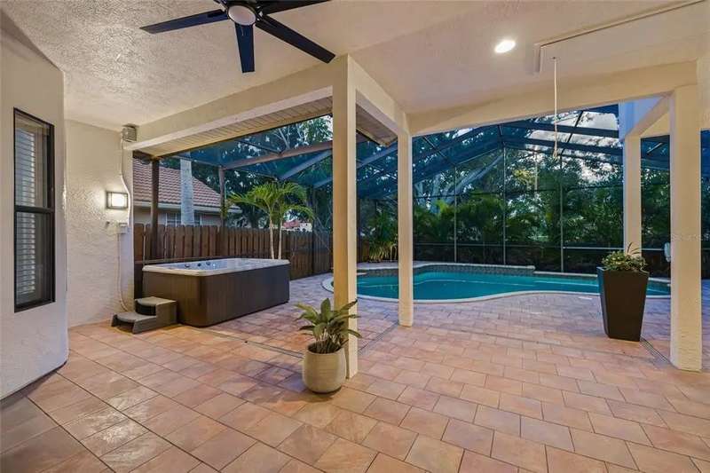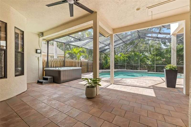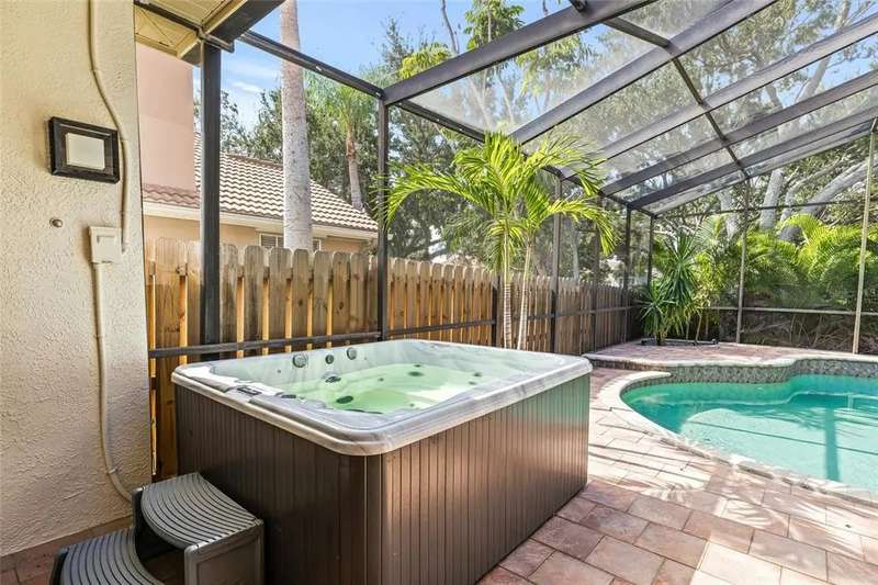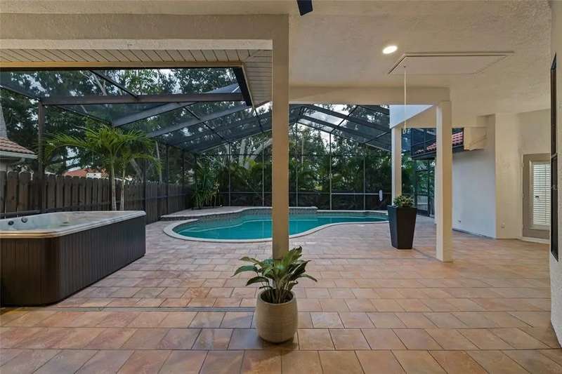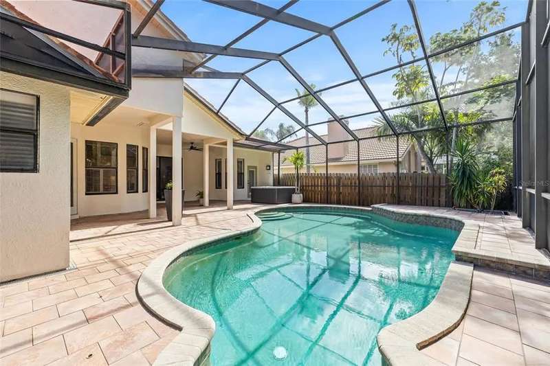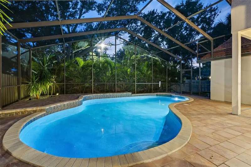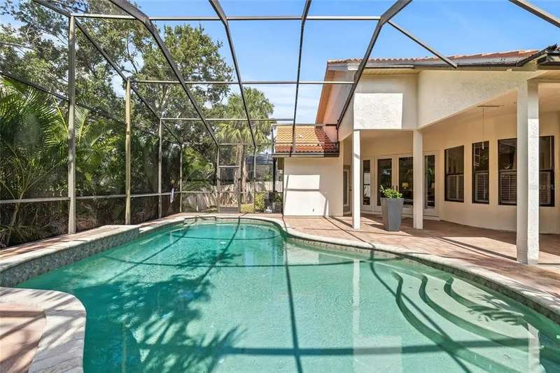 Welcome to the beauty and ease of Florida living in this stunning single-story, 4-bedroom, 3-bath home tucked inside the guard-gated community of Placido Bayou. Surrounded by mature trees, winding streets, and natural preserves, Placido Bayou offers the rare combination of tranquility and security—just minutes from vibrant downtown St. Petersburg. Step inside to find a bright, open split floorplan designed for both comfort and connection. Every main room looks out to the sparkling, heated saltwater pool and freestanding hot tub, where custom pavers and a screened lanai create an oasis perfect for afternoons in the sun or shaded poolside lounging. At the heart of the home, the gourmet kitchen features granite countertops, stainless steel appliances, a double oven, butcher block island, large pantry and breakfast bar—opening seamlessly to the vaulted hearth room with a cozy wood-burning fireplace and French doors. The spacious primary suite offers a peaceful escape with its spa-like bathroom—complete with granite double vanity, custom cabinetry, soaking tub, walk-in shower, and oversized custom closet. Guests and extended family will appreciate the private quarters behind a pocket door with a bedroom, full bath with step in shower, and outdoor access. With two living areas, a dining room (or home office), and generous storage—including two attics, an interior laundry room, and a 2-car garage—this home is designed for both everyday living and entertaining. Placido Bayou’s walkable streets, and serene fishing lakes make it a favorite for anyone who desires privacy while still being close to all the pleasures of city living. Furthermore, enjoy low HOA fees that include lawn maintenance, painting the exterior of the home every seven years, fence installation and more—just minutes to I-275, Tampa, two international airports, and the shops, dining, and waterfront charm of downtown St. Petersburg.