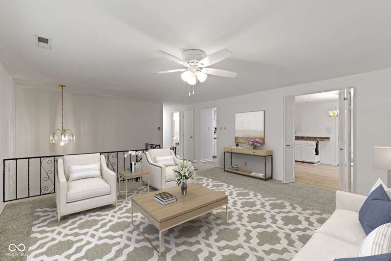Beautiful Three Bedroom Home with NO HOA in The Village of Mt Carmel. Welcoming Foyer leads to Upstairs Flex Space Great For Dining or Living Room with so much light & New Ceiling Fan. Fantastic Kitchen w/Upgraded Stainless Steel Appliances, Pantry, Xtra Storage and Slider to The Breezeway. HUGE Primary Suite w/Xtra Light, Walk-in Closet & Bathroom w/Two Vanities, New Shower, New toilet & New Flooring. Large Second & Third Bedrms w/Hardwood Floors. Brand New Paint Upstairs. Brand New Carpeting Upstairs. Newly Painted Exterior and Deck. Cozy Main Floor Family Room w/Game area, Wood Burning Fireplace, Built in Shelving & Newer Carpeting. Updated Half Bath. Laundry/Utility/Storage Room. Huge Bonus Room leads to Sunroom and Back Stairs & Exit. The Breezeway leads to 2 finished Rooms above the garage with Heat & Lift Station to the garage below Great for extra storage, work out or for a Home Based Business. Home includes a Large 2 Car Garage Located in the back with Extensive Parking space. NO HOA and Large Lot. Fresh Mulch at front and sides of the property. A new tile drain & Sump Pump installed 2025. Newer Roof.