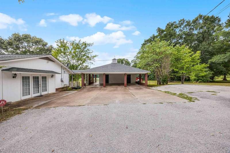Looking for property with room to spread out? This three bed and two bath brick home features 13 acres fenced with horse barn, metal building and running water. Huge living room with fireplace and hardwood floors. Large kitchen and dining room combo. 20x20 bonus room and all on one level making it the perfect retirement home. This home has a covered patio and separate screen porch. A carport that features a workshop and office. Shaded lawn with garden spot, grapevines and fruit trees.