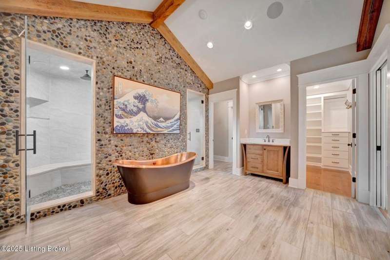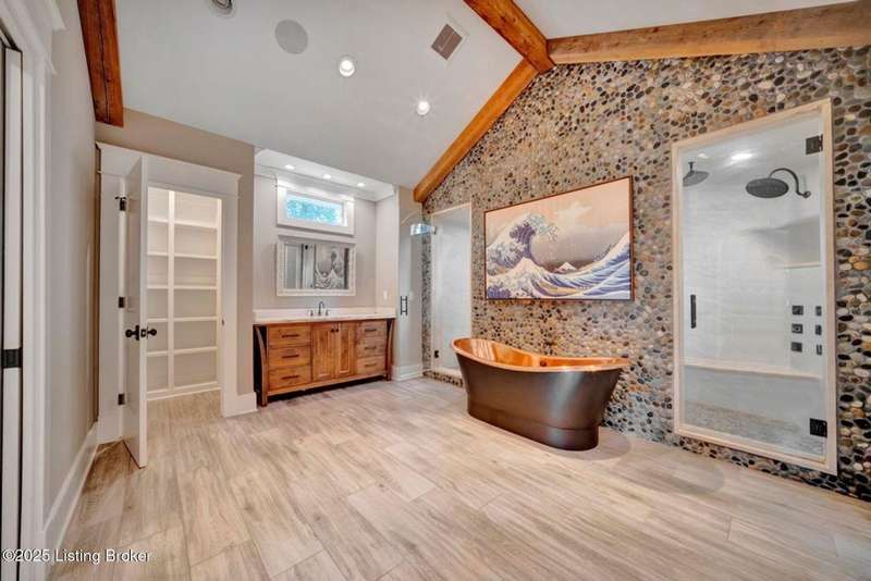 Unparalleled Lakefront Luxury with World-Class Technology & Bespoke Finishes Completed in 2017, this one-of-a-kind custom retreat blends timeless rustic elegance with state-of-the-art innovation, all set against sweeping lake views from nearly every room. Designed for the discerning homeowner, every inch of this residence showcases craftsmanship, comfort, and cutting-edge convenience. Step inside to soaring ceilings, rich 12'' knotty pine floors, and an open-concept great room anchored by a wood-burning stone fireplace and walls of glass that draw the outdoors in. The chef's kitchen is a masterpiece of function and style—vent-motor technology keeps the hood whisper-quiet, while the adjoining dining area and covered porch create a seamless indoor-outdoor entertaining The private owner's wing is an indulgent sanctuary with a gas-started wood-burning fireplace, heated floors, a steam shower with built-in speakers, dual walk-in closets, a sitting/nursery area, and a dedicated fitness roomfor your early morning workouts. Technology takes center stage here: a fully integrated Control4 home automation system manages lights, security cameras, audio, entertainment, HVAC, and moreall accessible from anywhere in the world. Automatic window treatments, Tesla Superchargers, epoxy-coated dual two-car garages with jackshaft openers, and an 800-amp electrical panel with generator-ready transfer switch elevate convenience to an art form. The walkout lower level is a destination in itself, boasting 12' wood-detailed ceilings, a copper-topped bar for 12, and a soundproof, Dolby Atmos-equipped theater featuring a Stewart screen, Focal speakers, acoustic paneling, and 13-channel surround. A cigar lounge with negative-pressure ventilation and its own mini-split system adjoins a cedar-planked humidor with plumbed humidificationtrue luxury for the aficionado. Additional amenities include a shuffleboard table, wine cellar, and a guest suite with private entry. Outdoors, enjoy lakefront living with covered patios, built-in speakers, hot tub wiring, and walking paths. Infrastructure highlights include geothermal HVAC, dual 100-gallon water heaters, whole-house humidification, and ATT Fiber availability. Elevated Lifestyle with Lake Forest Community Nestled within the prestigious Lake Forest community, this home presents access to premium amenitiesincluding resort-style pools, tennis and volleyball courts, playgrounds, and scenic walking trails. A beautifully landscaped clubhouse hosts social events and is available for private rentals. The famed Lake Forest Country Clubwith its Arnold Palmer-designed golf course, Har-Tru tennis courts, fine dining, and year-round programmingis nearby, with membership available separately. This home is more than a propertyit's a private resort, a statement of style, and an investment in a lifestyle defined by comfort, convenience, and prestige. If you demand the extraordinary, this is where you'll find it.