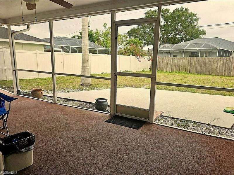 Welcome to your dreamy retreat in the heart of Cape Coral - a place where warmth, comfort, and charm come together to create the perfect escape. Whether you're looking for a peaceful family haven, a seasonal snowbird getaway, or a stunning Airbnb investment, this home offers it all. Bask in peace of mind with a newer roof, fully paid assessments, and accordion shutters adorning every window and slider - thoughtfully designed for both beauty and security. Gentle ceiling fans whisper through each room, while the screened front and back lanais invite the tropical breeze to dance through your days and nights. Imagine cozying up by the grand fireplace, roasting marshmallows and sharing stories with your loved ones on those rare cool evenings. With no carpet underfoot, the home feels fresh and easy to maintain - and yes, there's even room to add your dream pool under the sun-drenched skies. Perfectly situated close to shopping, boat ramps, fine dining, and the sparkling beaches, your days can be filled with exploration, and your evenings... with laughter, cocktails, and cherished memories made under the stars in your private lanai. Come fall in love with a lifestyle that's restful, radiant, and ready for you. Veteran friendly and full of heart - this is more than a home. It's your next chapter. *Veteran Friendly*