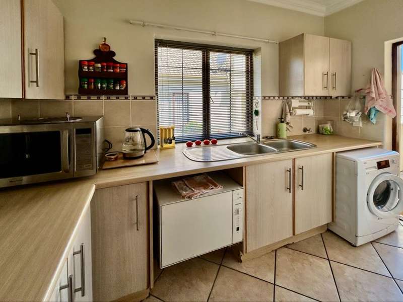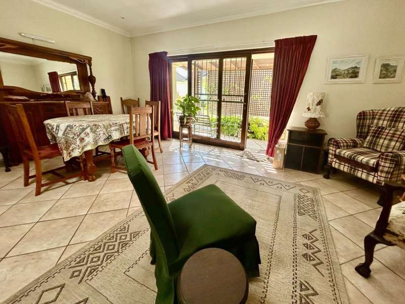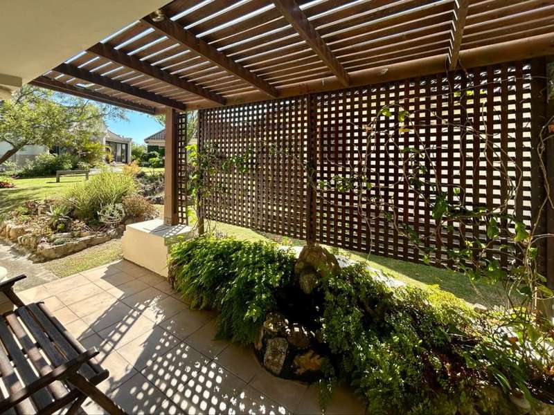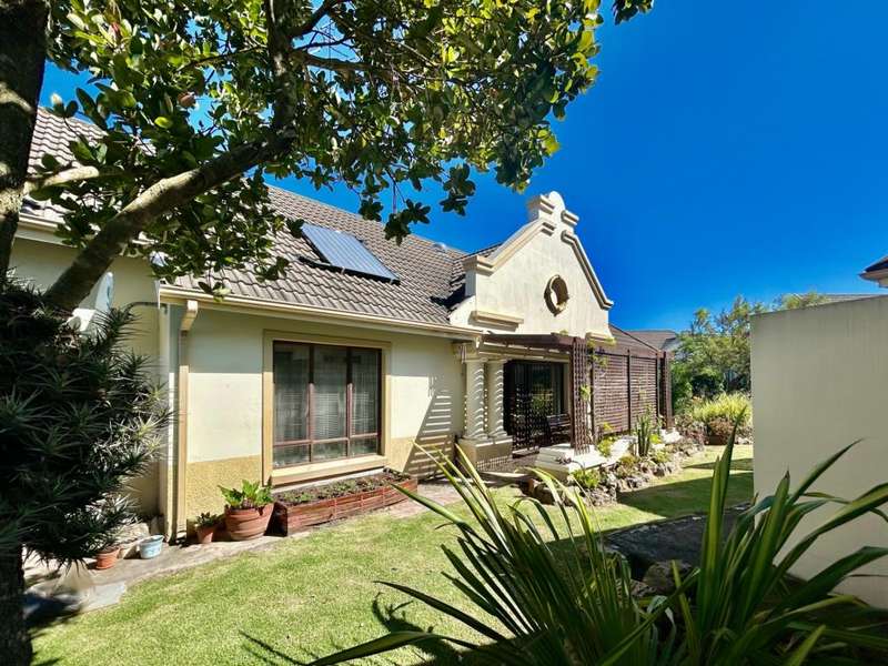 Discover the perfect blend of comfort, security, and natural beauty in this charming north-facing home, nestled within the exclusive Blue Mountain Retirement Village - a secure enclave within the sought-after Blue Mountain Village Estate. Designed with retirement living in mind, this home offers two well appointed bedrooms, with the main bedroom featuring ample cupboard space and a private en-suite bathroom. A second bathroom is conveniently located near the second bedroom, along with additional linen cupboards for extra storage. The inviting open-plan living and dining area welcomes you upon entry, seamlessly flowing into a well-designed L-shaped kitchen with a separate scullery. A private outdoor washline area adds to the practicality of the space. One of the home's most unique features is the tranquil covered patio, where a custom-built water fountain and lush plant wall create a serene retreat. This carefully crafted outdoor space is perfect for enjoying peaceful mornings or unwinding in the afternoon sun. Just beyond the private garden, a beautifully landscaped feature pond and rockery area await - designed and built over time by the current owners, who personally collected each stone. Winding pathways and gardens where the natural surroundings and abundant birdlife create a tranquil and picturesque setting. Residents of Blue Mountain Retirement Village enjoy the benefits of double-gated security, with access to the greater estate's walking trails, open spaces, and 24/7 security patrols, ensuring a safe and peaceful lifestyle. Conveniently located near major shopping centers such as Eden Meander, Garden Route Mall, and Outeniqua Lifestyle Centre, as well as the George Airport, this home truly offers everything needed for a comfortable, secure, and fulfulling retirement.