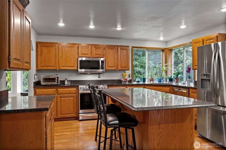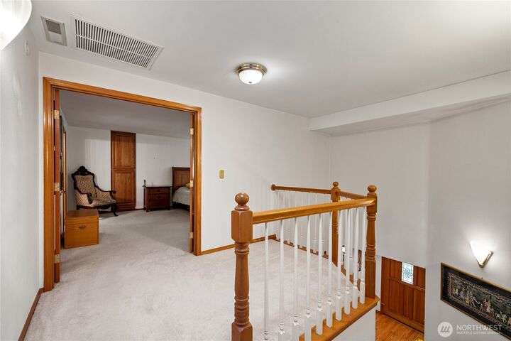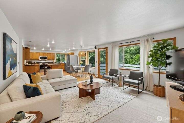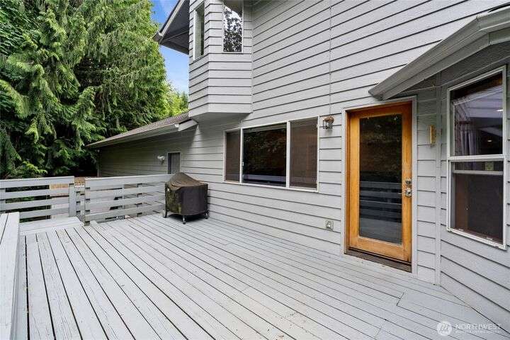 Nestled along the forested acres of Dash Point State Park, this stunning 4-bedroom home offers unparalleled privacy with direct access to trails leading to the Puget Sound. The open floor plan features a welcoming family room with fireplace, elegant living and dining rooms with bay windows, and a large chef’s kitchen, complemented by an oversized deck perfect for entertaining. The main floor includes one bedroom and a 3/4 bath. Upstairs boasts a huge primary bedroom with two walk-in closets and a full bath, plus two additional bedrooms. Amenities include 3-car garage, heat pump, and terraced yard. For those seeking an even larger retreat, an adjacent vacant lot (MLS#2377361) is available, creating just shy of a one-acre private oasis.