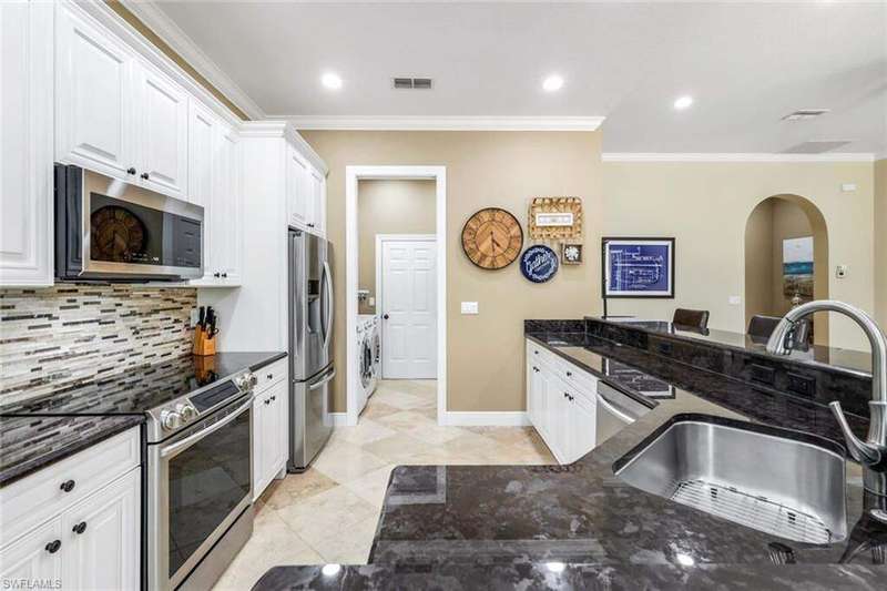 Brand NEW ROOF & NEW AC installed!!! This is THE ONE you've been waiting for! Conveniently located in the desirable Oak Strand neighborhood of Shadow Wood at the Brooks, this rarely available 3 bedroom/2 bathroom Ibis floor plan has been completely reimagined to offer a truly one-of-a-kind living experience. The seamless, open floor plan was created by removing the wall between the kitchen and the great room, making it ideal for entertaining and everyday family life. In the kitchen, granite countertops, stainless steel appliances, upgraded cabinetry and an oversized bar for ample seating, are sure to delight the family chef. Other notable features include an abundance of recessed lighting installed throughout the home, grand 8-foot doors throughout, and striking 18-inch travertine flooring on the diagonal that exude sophistication. The former den has been thoughtfully converted into a third bedroom, complete with a spacious walk-in closet, providing flexibility to suit your lifestyle. Step outside into your own private oasis, where Southern exposure means sun-soaked afternoons by your private pool all season long. Beyond the pool, discover a secluded backyard retreat with lush landscaping and preserve views for maximum privacy. For seasonal owners, an electric hurricane shutter completely encloses the lanai, providing convenience and peace of mind during the summer months. Don't miss the opportunity to make this slice of paradise your own! Shadow Wood Country Club offers private membership with 54 holes of Rees Jones re-designed championship golf, outstanding dining & activities, lighted tennis courts (9) and bocce ball courts (3). Recently approved by the membership, the NEW Lifestyle center will introduce a resort style pool, 6 indoor air-conditioned pickle ball courts, 8 new tennis courts with stadium style seating (replacing the existing courts), a new outdoor covered pool side restaurant and new tennis/racquet shop all located in the central clubhouse area creating a complete resort area of fun. Also available within the Brooks complex is the Commons Club, a private membership only entity with lakeside restaurant, outstanding state of the art Fitness Center, Enrichment Center, Beach Club and more!