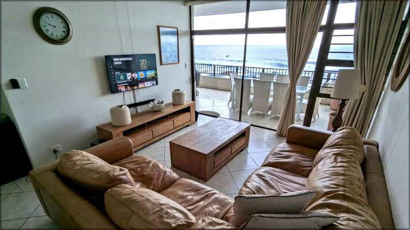This top floor apartment offers breathtaking breaker views from its raised position overlooking the Manaba beachfront. This stylish, double-story apartment is ideal for holidays, providing comfortable and modern accommodation. The apartment is spacious and features a open plan lounge and dining area downstairs, opening onto a balcony with stunning breaker views. The fully equipped kitchen includes a dishwasher, granite tops, modern finishes and more than enough storage space.Upstairs, you'll find a second lounge with a dining area, and kitchenette, as well as an additional bedroom and bathroom. The apartment offers four bedrooms, including a master bedroom with an en-suite bathroom. All bedrooms are air-conditioned and have ceiling fans. The apartment is also sold fully furnished with tandem garage, laundry and storeroom adding value. The property is a well-maintained with a fenced-in swimming pool and a communal braai area.