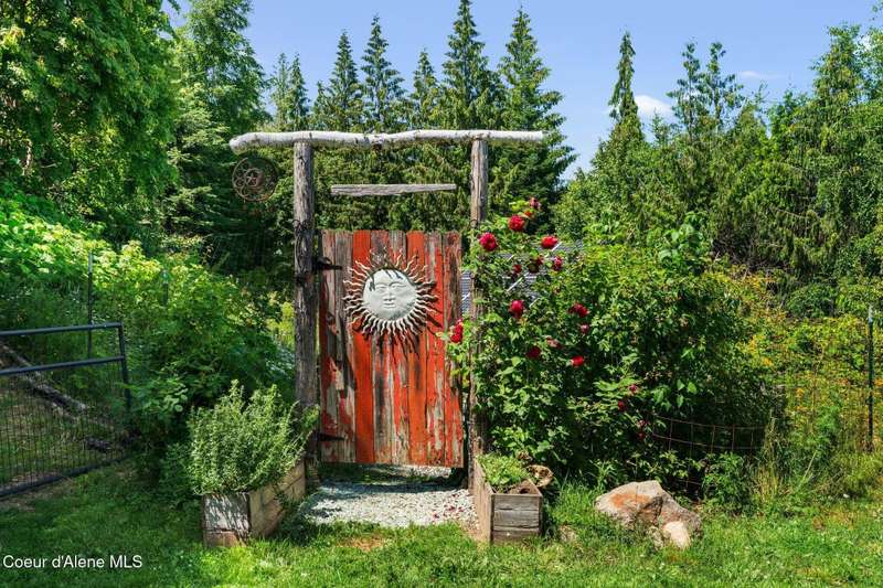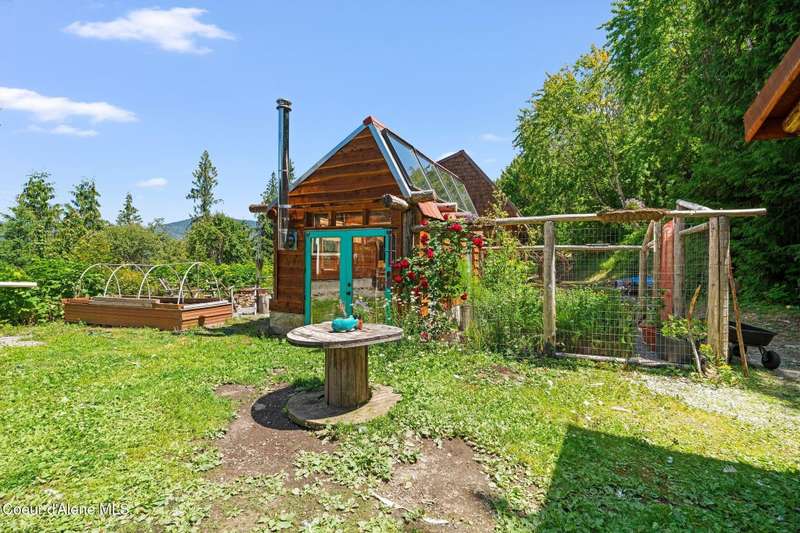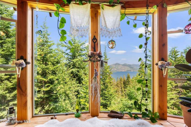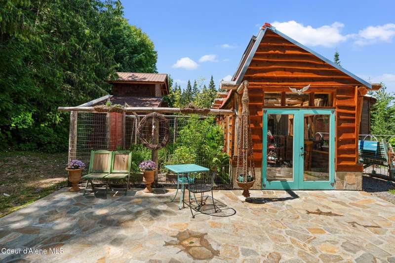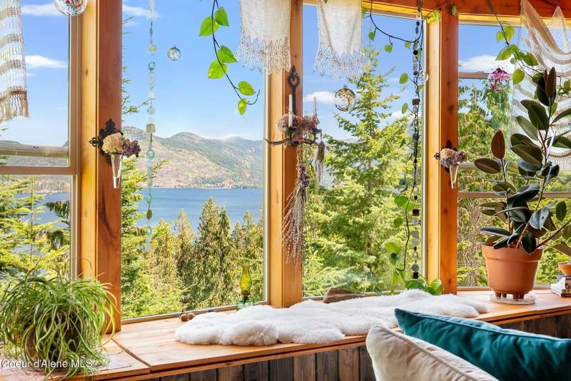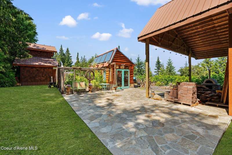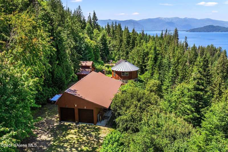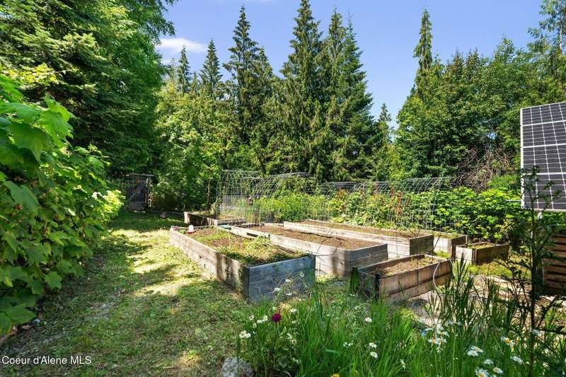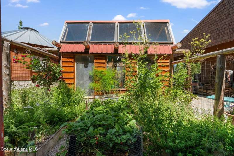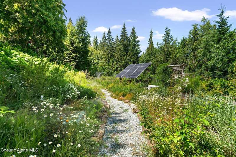 Nestled in North Idaho's pristine wilderness, this extraordinary 1,734 sqft custom home offers unparalleled off-grid living on 10acres with breathtaking 180-degree views overlooking majestic Lake Pend Oreille and surrounding mountain ranges. Designed for sustainable luxury, the property features a gourmet kitchen with commercial-grade 36'' stainless range, professional fridge, and handcrafted hammered copper sink, complemented by custom cabinetry and striking turquoise stone backsplash. Year-round comfort comes from a freestanding gas stove and ultra-efficient Blaze King wood stove, with eco-conscious Heatlok Soy Green spray foam and Rockwool insulation ensuring energy efficiency. The property's robust systems include ample Solar power with Lithium batteries, a 14,000-watt generator, buried 1,000-gallon propane tank, 1,500-gallon cistern, and reliable 15+ GPM well. Multiple outdoor living spaces showcase the stunning lake views, including a fireside cantina bar and custom Italian pizza oven at the secondary firepit - perfect for entertaining while enjoying Lake Pend Oreille's ever-changing beauty. This homesteader's paradise features a 10x16 cedar/stone greenhouse, fenced garden with 6 raised beds, an herbal garden, a new animal barn, and chicken run with two coops, plus an orchard producing apples, pears, cherries and plums. The massive 50'x24' garage/workshop with concrete floors and electrical service provides ample space, with potential for expansion. Just 30 minutes from Sandpoint's amenities yet completely private via county-maintained roads, this turnkey property masterfully blends seclusion with accessibility. From the commercial-quality kitchen to the agricultural infrastructure and those mesmerizing Lake Pend Oreille views, every detail creates a self-sufficient lifestyle without compromising comfort. This rare offering combines sustainable design with breath taking natural beauty, delivering everything needed for modern homesteading against a backdrop of North Idaho's most spectacular scenery.