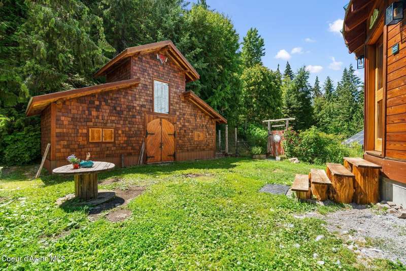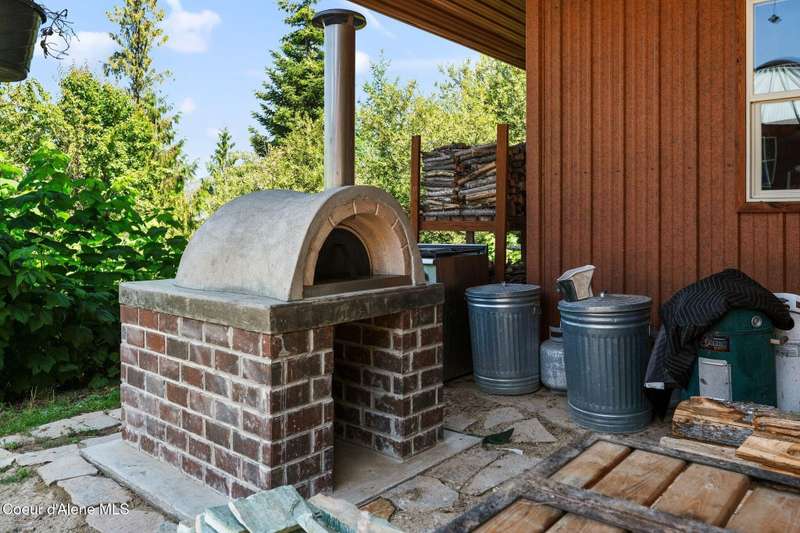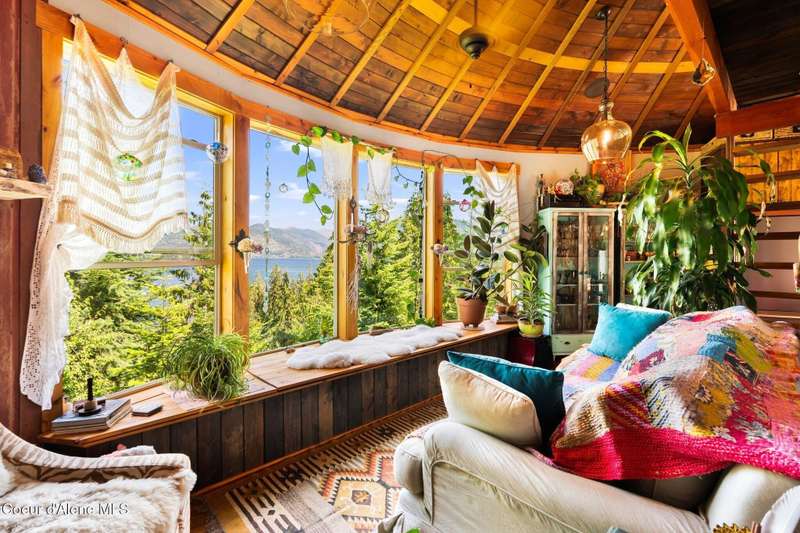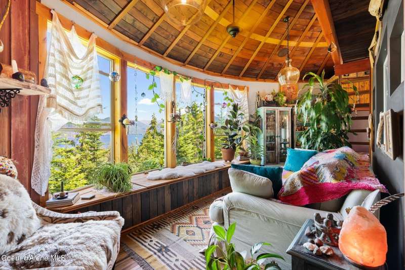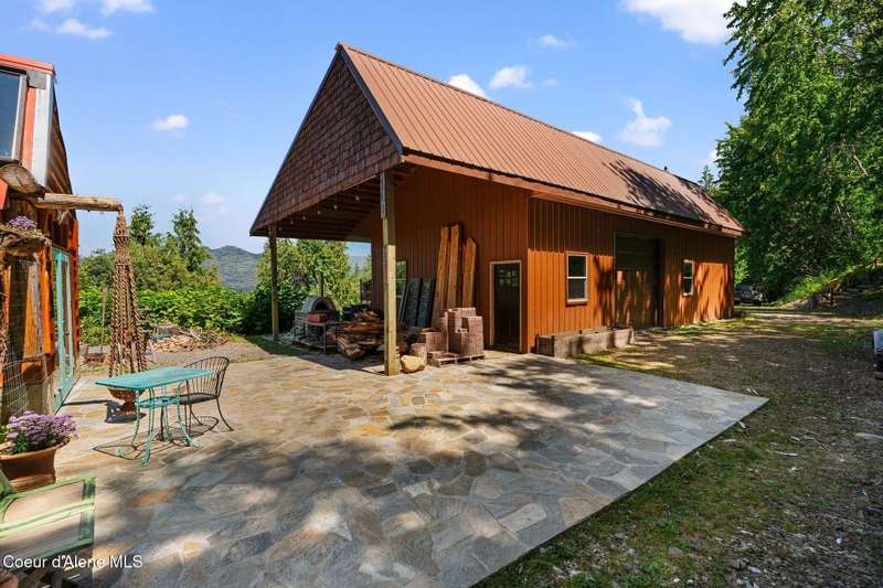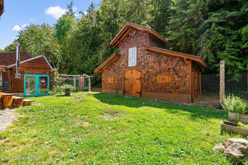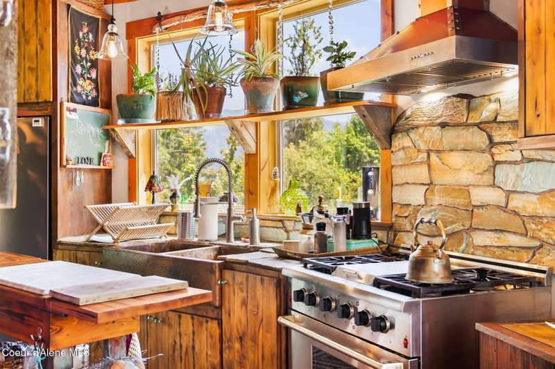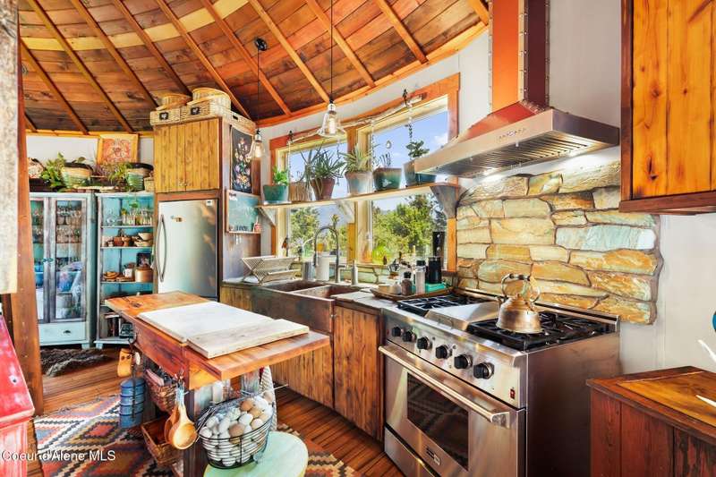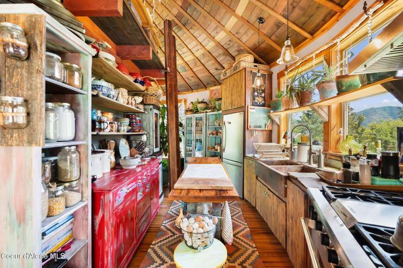 Nestled in North Idaho's pristine wilderness, this extraordinary 1,734 sqft custom home offers unparalleled off-grid living on 10acres with breathtaking 180-degree views overlooking majestic Lake Pend Oreille and surrounding mountain ranges. Designed for sustainable luxury, the property features a gourmet kitchen with commercial-grade 36'' stainless range, professional fridge, and handcrafted hammered copper sink, complemented by custom cabinetry and striking turquoise stone backsplash. Year-round comfort comes from a freestanding gas stove and ultra-efficient Blaze King wood stove, with eco-conscious Heatlok Soy Green spray foam and Rockwool insulation ensuring energy efficiency. The property's robust systems include ample Solar power with Lithium batteries, a 14,000-watt generator, buried 1,000-gallon propane tank, 1,500-gallon cistern, and reliable 15+ GPM well. Multiple outdoor living spaces showcase the stunning lake views, including a fireside cantina bar and custom Italian pizza oven at the secondary firepit - perfect for entertaining while enjoying Lake Pend Oreille's ever-changing beauty. This homesteader's paradise features a 10x16 cedar/stone greenhouse, fenced garden with 6 raised beds, an herbal garden, a new animal barn, and chicken run with two coops, plus an orchard producing apples, pears, cherries and plums. The massive 50'x24' garage/workshop with concrete floors and electrical service provides ample space, with potential for expansion. Just 30 minutes from Sandpoint's amenities yet completely private via county-maintained roads, this turnkey property masterfully blends seclusion with accessibility. From the commercial-quality kitchen to the agricultural infrastructure and those mesmerizing Lake Pend Oreille views, every detail creates a self-sufficient lifestyle without compromising comfort. This rare offering combines sustainable design with breath taking natural beauty, delivering everything needed for modern homesteading against a backdrop of North Idaho's most spectacular scenery.