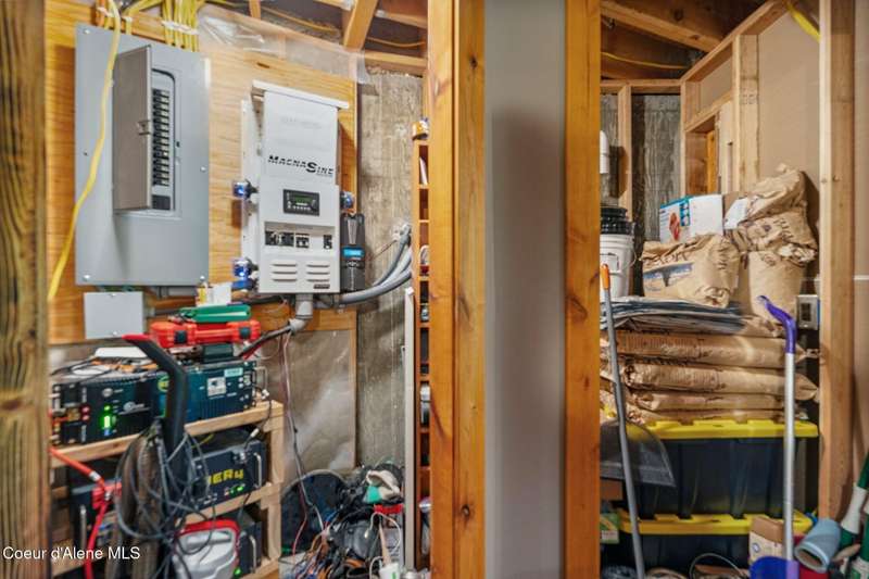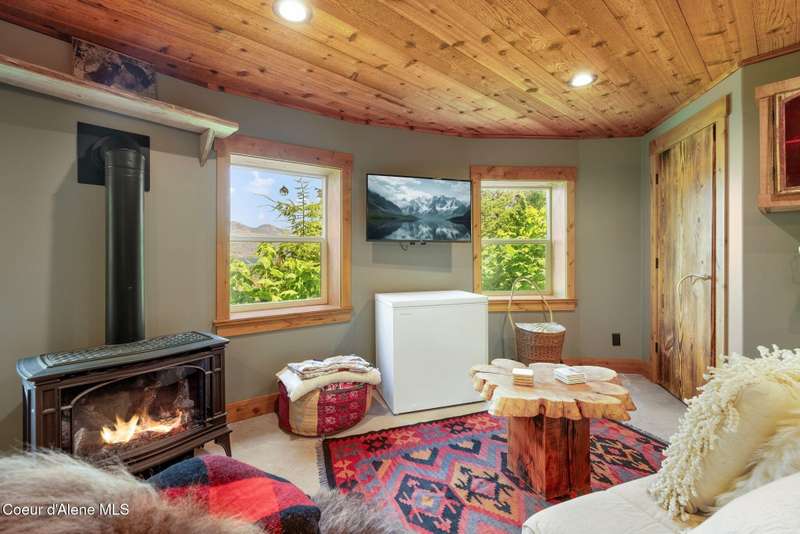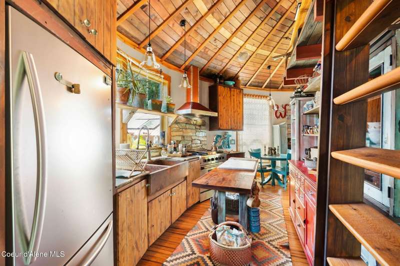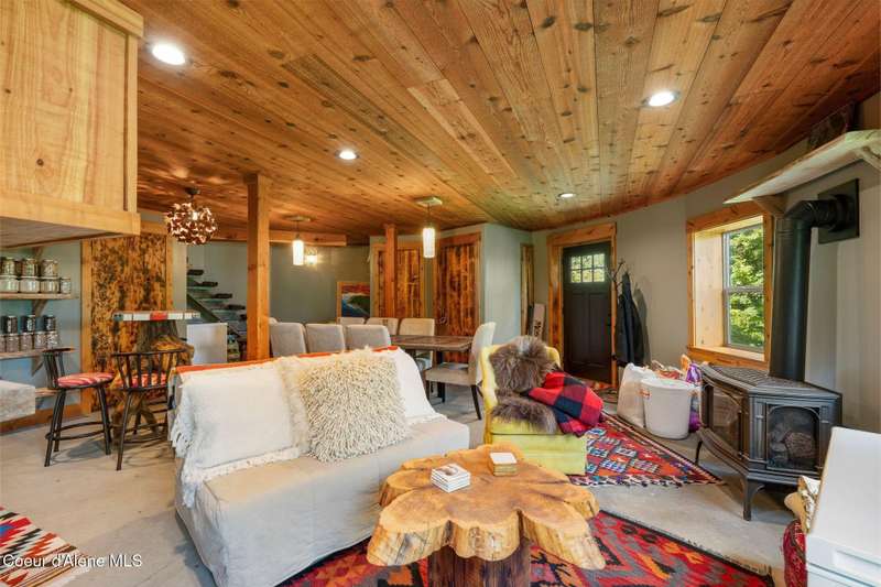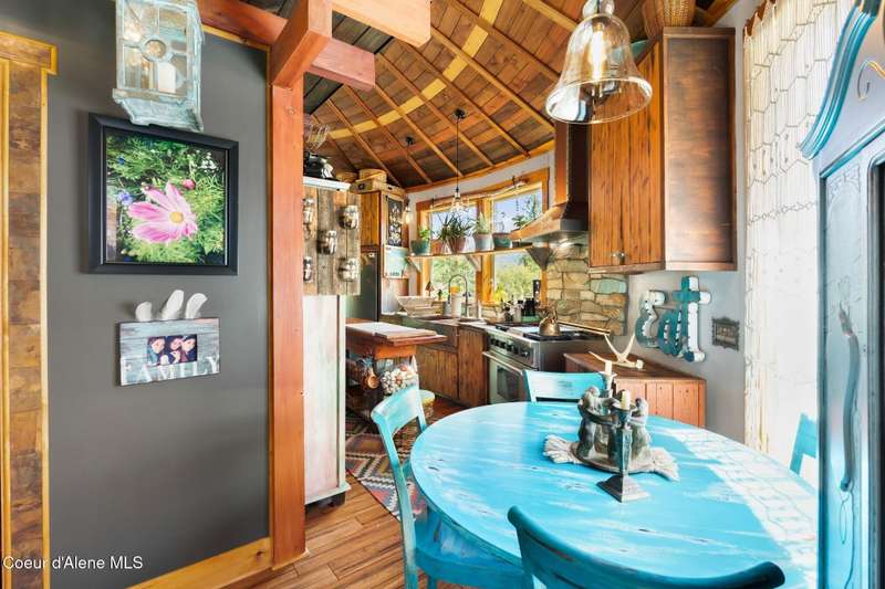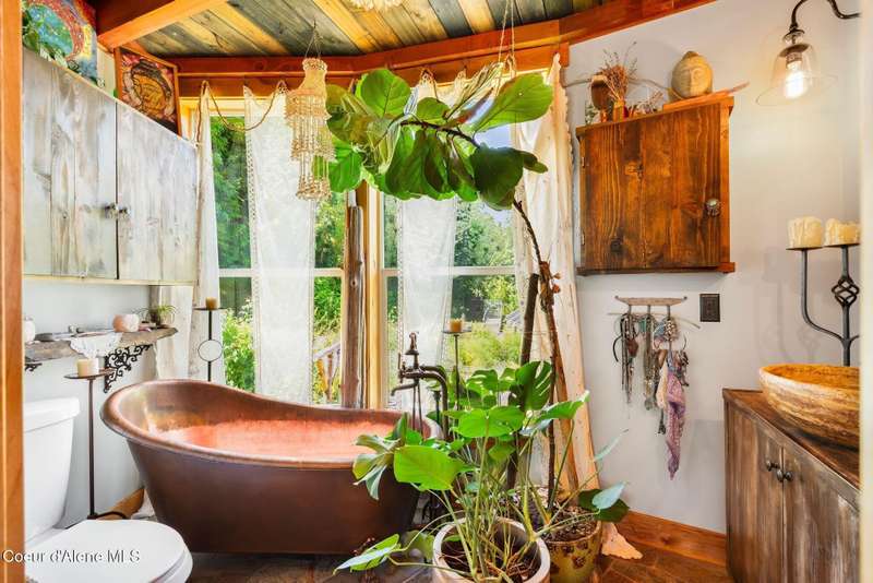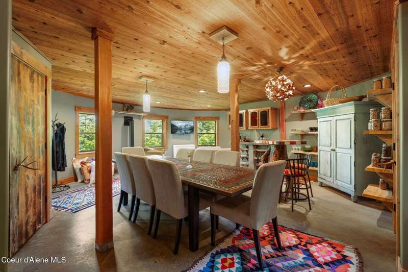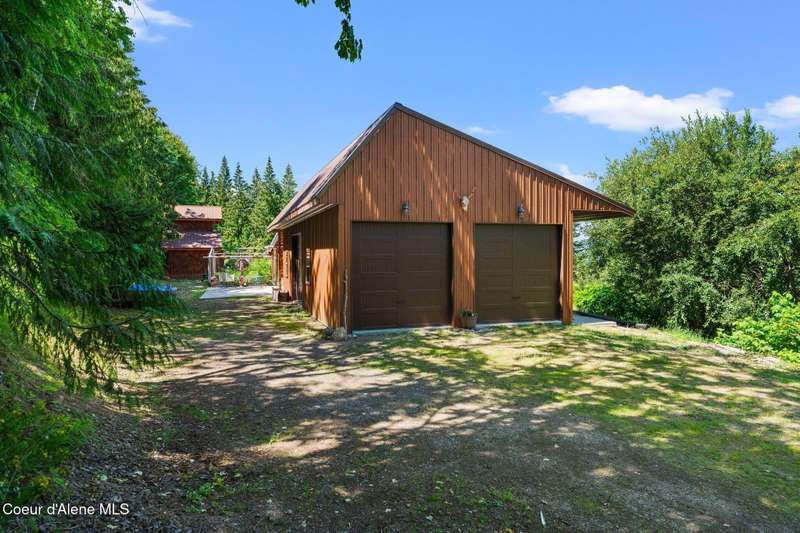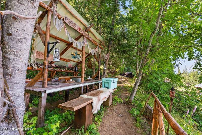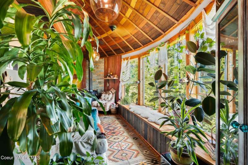 Nestled in North Idaho's pristine wilderness, this extraordinary 1,734 sqft custom home offers unparalleled off-grid living on 10acres with breathtaking 180-degree views overlooking majestic Lake Pend Oreille and surrounding mountain ranges. Designed for sustainable luxury, the property features a gourmet kitchen with commercial-grade 36'' stainless range, professional fridge, and handcrafted hammered copper sink, complemented by custom cabinetry and striking turquoise stone backsplash. Year-round comfort comes from a freestanding gas stove and ultra-efficient Blaze King wood stove, with eco-conscious Heatlok Soy Green spray foam and Rockwool insulation ensuring energy efficiency. The property's robust systems include ample Solar power with Lithium batteries, a 14,000-watt generator, buried 1,000-gallon propane tank, 1,500-gallon cistern, and reliable 15+ GPM well. Multiple outdoor living spaces showcase the stunning lake views, including a fireside cantina bar and custom Italian pizza oven at the secondary firepit - perfect for entertaining while enjoying Lake Pend Oreille's ever-changing beauty. This homesteader's paradise features a 10x16 cedar/stone greenhouse, fenced garden with 6 raised beds, an herbal garden, a new animal barn, and chicken run with two coops, plus an orchard producing apples, pears, cherries and plums. The massive 50'x24' garage/workshop with concrete floors and electrical service provides ample space, with potential for expansion. Just 30 minutes from Sandpoint's amenities yet completely private via county-maintained roads, this turnkey property masterfully blends seclusion with accessibility. From the commercial-quality kitchen to the agricultural infrastructure and those mesmerizing Lake Pend Oreille views, every detail creates a self-sufficient lifestyle without compromising comfort. This rare offering combines sustainable design with breath taking natural beauty, delivering everything needed for modern homesteading against a backdrop of North Idaho's most spectacular scenery.
