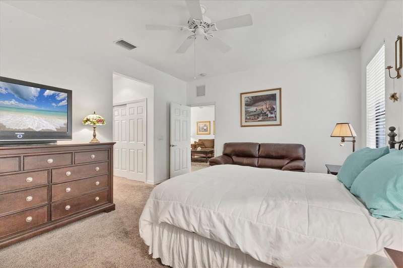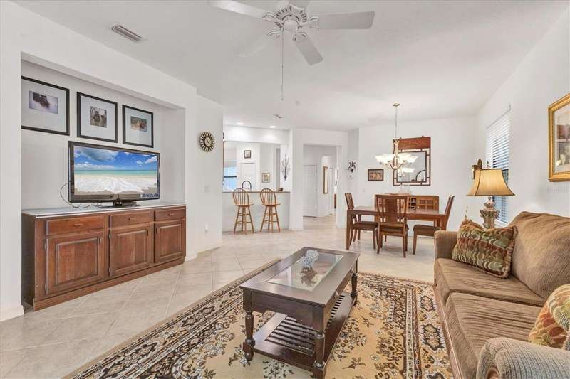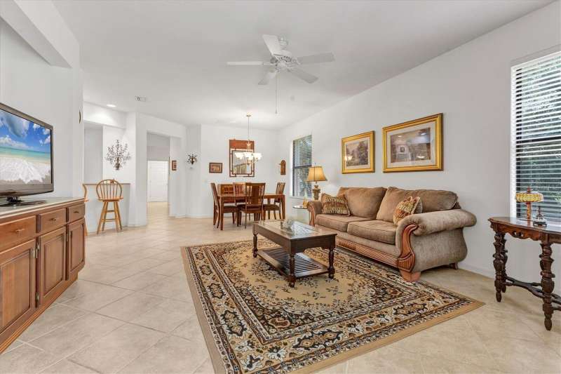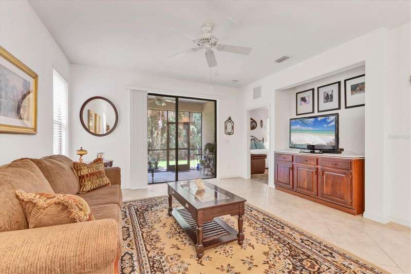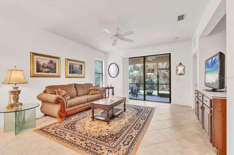 Rarely available end-unit villa on a premium lot with no rear neighbors and tranquil preserve views! Located in the gated, maintenance-free 55+ community of Venetian Falls. This home is a must see on your list of Villas to tour. Built in 2006, this 2 bed / 2 bath + bonus room with a 2-car garage is one of the largest villas in Venetian Falls at 1,600 sq ft. The open-concept dining and living area, combined with high ceilings and a view of the preserve, creates an expansive and airy space. The spacious primary suite sits towards the back of the home and features a large walk-in closet with a secondary built-in closet for the extra storage space. The primary bathroom is equipped with double sinks and a walk-in shower. The eat-in kitchen features solid wood cabinets, pull-out shelves, breakfast bar, kitchen nook, and pantry. Updates include water heater, under-sink plumbing, faucets,and microwave. Hurricane (accordion style) shutters installed. Here in Venetian Falls, you will find resort-style amenities: heated pool, fitness center, clubhouse, game room, bocce, library & full calendar of social events. Located within minutes to historic downtown Venice and Venice Beach. Enjoy the best of Florida living!