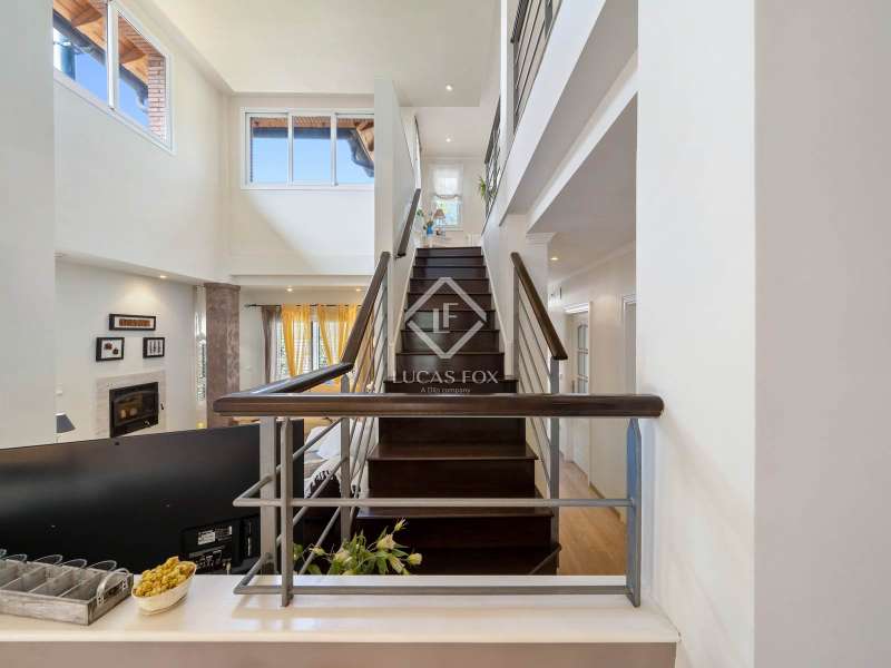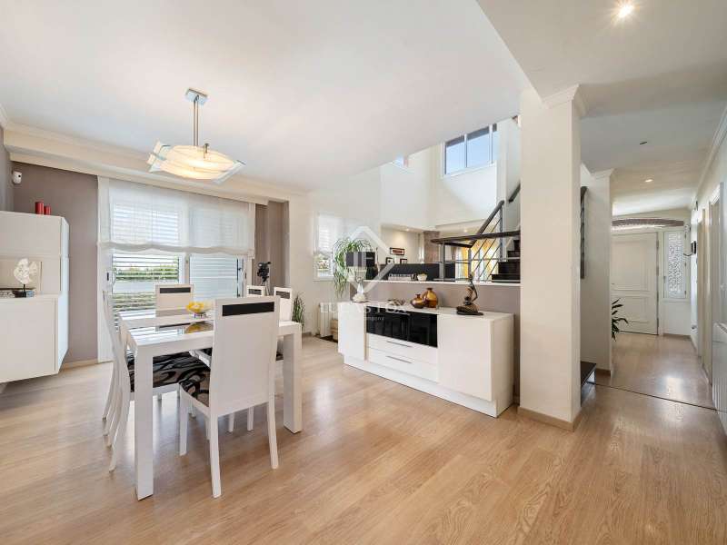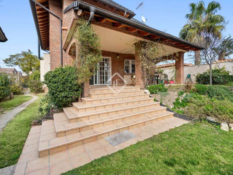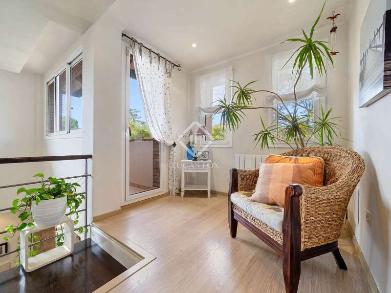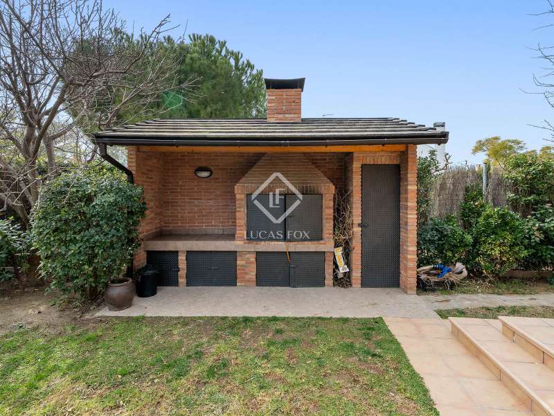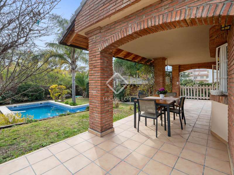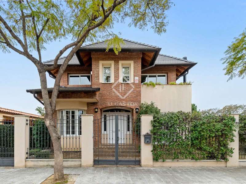 Lucas Fox presents this property with architectural characteristics with a marked American style. The natural brick on the façade and the structure with exposed wooden beams on the exterior of the roof give it a singular and almost unique aesthetic in the area. Inside, light floods the central body of the house, made up of the open-plan -plan living-dining room with a double-height ceiling that leads to the night area on the first floor. On the ground floor, after passing the entrance hall, there is a study-type double bedroom on your left and a guest bathroom. The spaces are distributed around this central body, made up of a spacious living room with a glass-enclosed fireplace and a dining room. Sliding doors connect the dining room with the large kitchen with an office area, fully glazed with windows that open to the exterior. Once outside, there is a large summer porch that presides over the well-kept garden, with a central pool and a built-in barbecue on its right. Going back inside and going up a comfortable central staircase that joins the two floors, you access the first floor where the night area is located. All bedrooms are doubles, including the exclusive main bedroom with a semi-open private bathroom , separate dressing room and a terrace overlooking the garden and pool. The lower floor completes the property, with a large garage for several vehicles, a warehouse and a storage room. It should be noted that the garden area adjoins a large public space, where no construction can ever be built as it is a green area and a neighborhood park. A unique opportunity a few minutes from the sea and the beach. Contact Lucas Fox for more information and to visit this exclusive property.