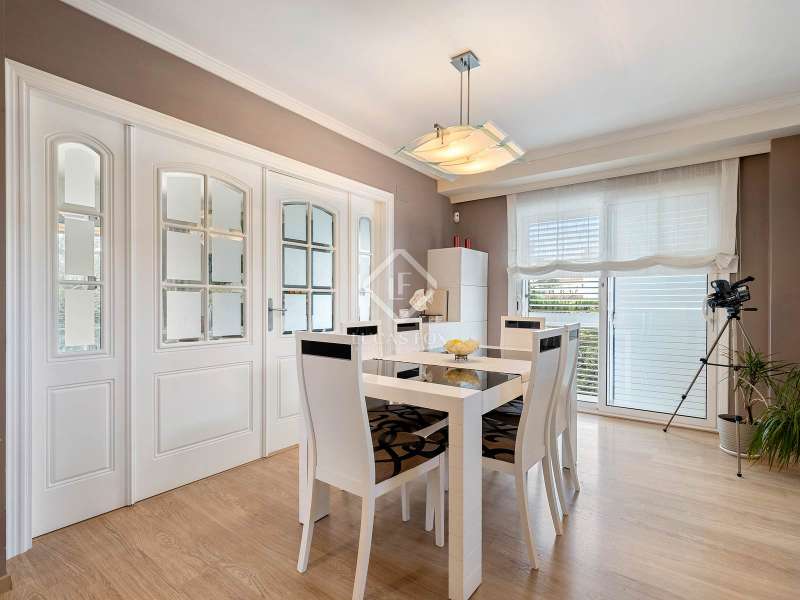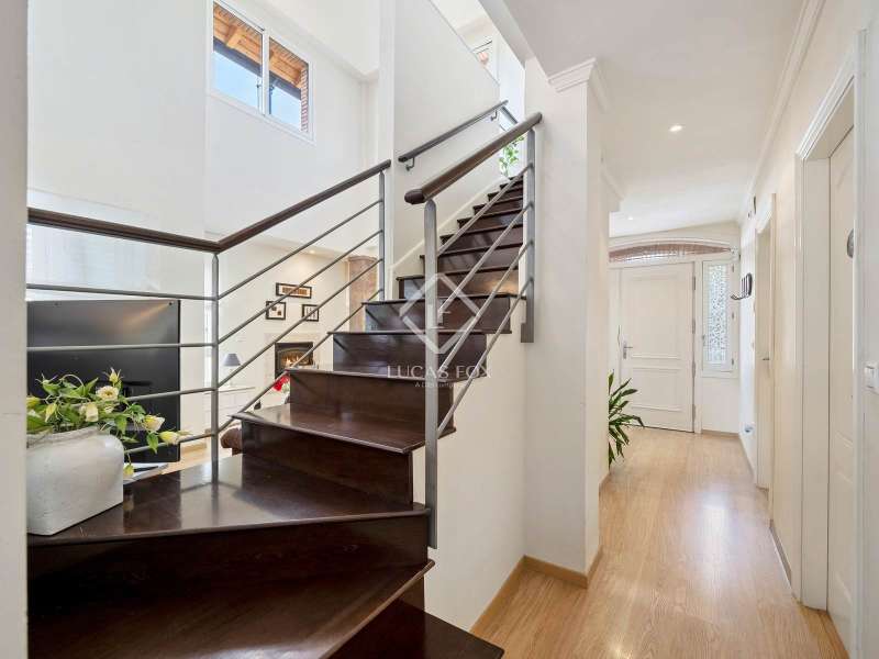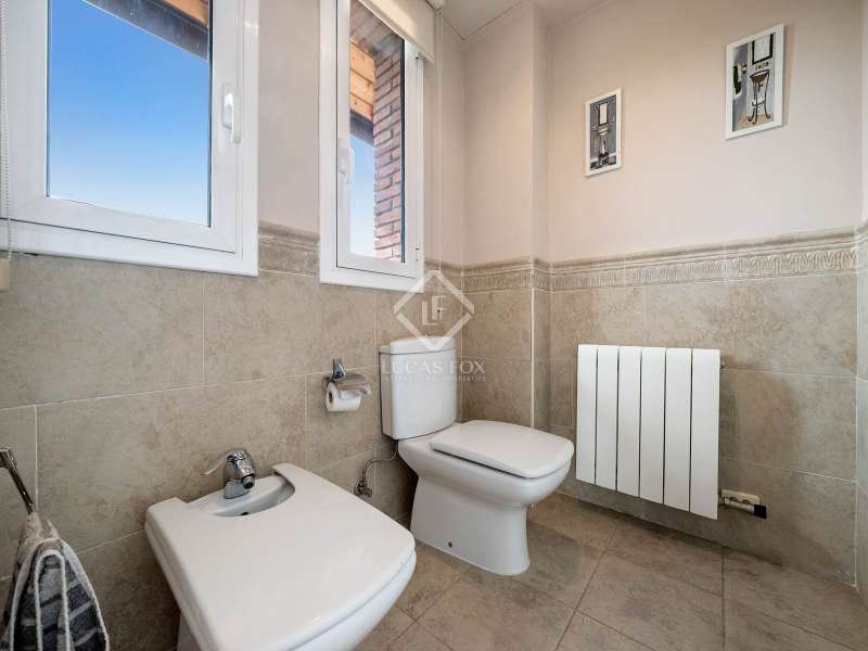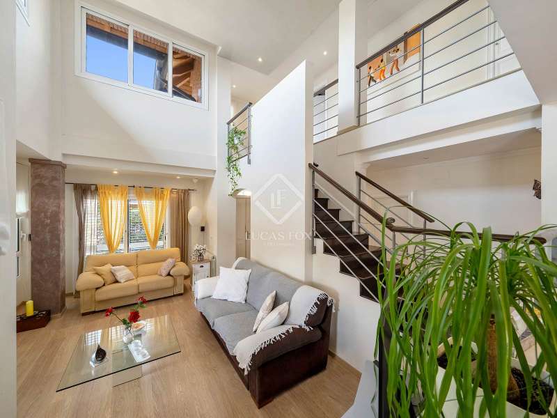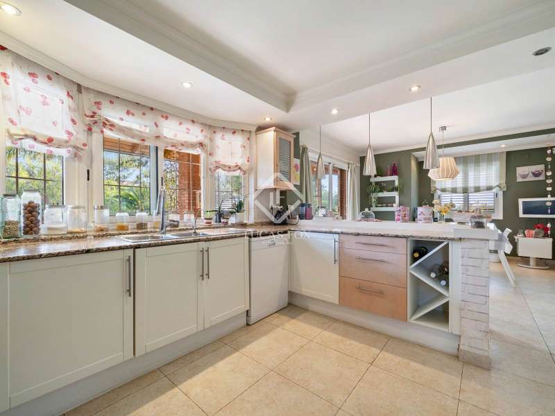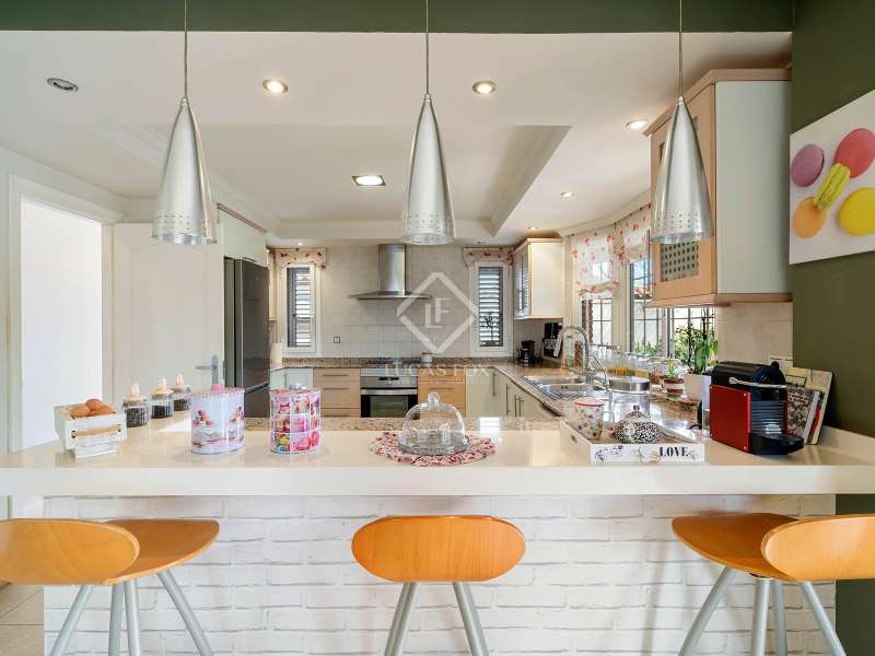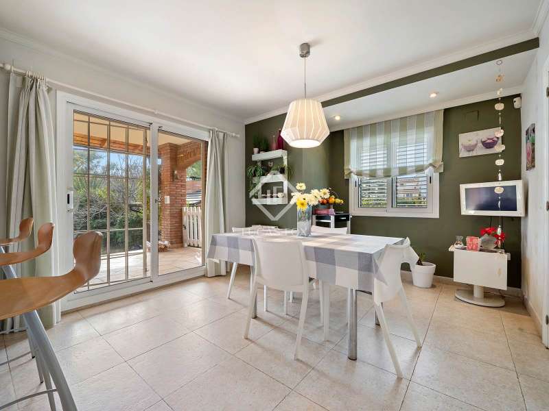 Lucas Fox presents this property with architectural characteristics with a marked American style. The natural brick on the façade and the structure with exposed wooden beams on the exterior of the roof give it a singular and almost unique aesthetic in the area. Inside, light floods the central body of the house, made up of the open-plan -plan living-dining room with a double-height ceiling that leads to the night area on the first floor. On the ground floor, after passing the entrance hall, there is a study-type double bedroom on your left and a guest bathroom. The spaces are distributed around this central body, made up of a spacious living room with a glass-enclosed fireplace and a dining room. Sliding doors connect the dining room with the large kitchen with an office area, fully glazed with windows that open to the exterior. Once outside, there is a large summer porch that presides over the well-kept garden, with a central pool and a built-in barbecue on its right. Going back inside and going up a comfortable central staircase that joins the two floors, you access the first floor where the night area is located. All bedrooms are doubles, including the exclusive main bedroom with a semi-open private bathroom , separate dressing room and a terrace overlooking the garden and pool. The lower floor completes the property, with a large garage for several vehicles, a warehouse and a storage room. It should be noted that the garden area adjoins a large public space, where no construction can ever be built as it is a green area and a neighborhood park. A unique opportunity a few minutes from the sea and the beach. Contact Lucas Fox for more information and to visit this exclusive property.