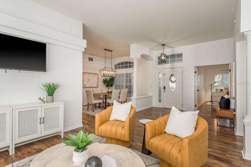Experience the best of Westchase living in this elegant 3-way split floor plan 5-bedroom, 3-bathroom residence. Thoughtfully designed for both comfort and sophistication, the home features an oversized Pepple Tec salt chlorinated pool and rear super-sized screened lanai and child safety fence for fun Florida entertaining, custom primary closet, garden tub, FULL size wine refrigerator, high-end lighting, and a series of recent upgrades including a state-of-the-art DAIKIN Variable speed 17 SEER HVAC system, new dishwasher, and new washer and dryer. 30-year dimensional roof 2018. There are 4 mounted TV's included in the sale, one in the living room, one in the family room and two on the back lanai. Just a short stroll away, Glencliff Park offers tranquil trails and serene docks for fishing or relaxation. Families will also value the highly acclaimed Alonso High School, home to the prestigious International Baccalaureate program. Set in one of Tampa’s most celebrated communities, this home offers a rare combination of luxury, convenience, and lifestyle. Westchase is easily considered to be on one of the most prestigious suburbs in all of Tampa Bay and was ranked by Niche.com as the number one best suburb in all of Florida in August 2023 and ranked number one in Tampa Bay in 2025. 1 Westchase community amenities include resort style pools, tennis courts, pickle ball courts, splash park, ping pong tables, playgrounds, basketball courts, pavilions, outdoor fitness equipment, and miles of walking paths, bridges and ponds to discover.