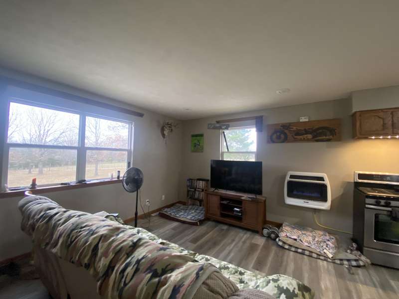 Fantastic home surrounded by 30+/- acres with a spring fed pond and a one car detached garage!! This two bedroom, one bath home, remodeled five years ago features an open living/dining room/kitchen area with center island and gas/electric stove hookup, laundry area, entry closet (perfect for storage) along with spacious sized bedrooms. Don't miss this one!!! Located in Southwest Electric District-