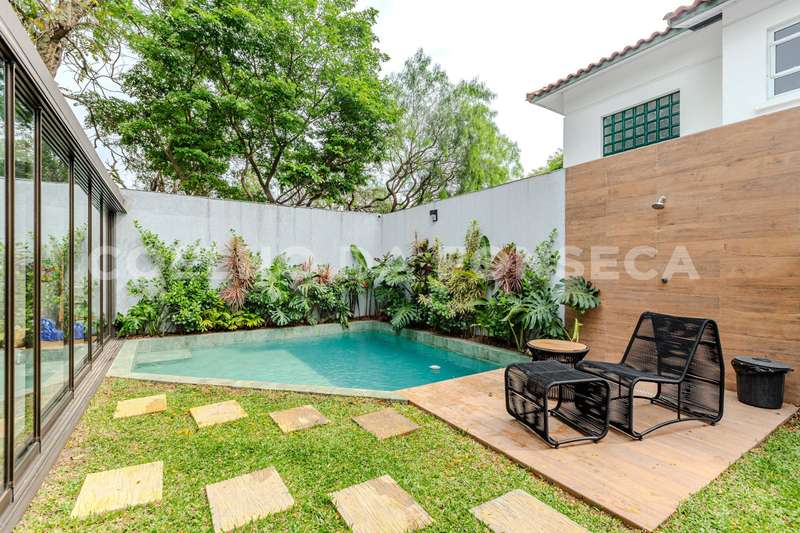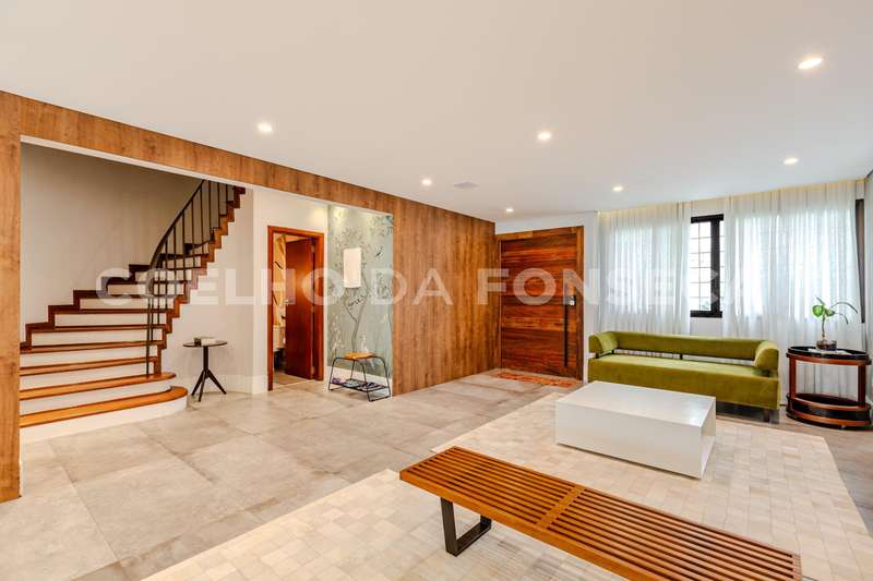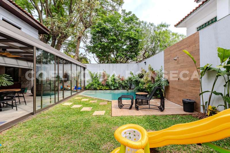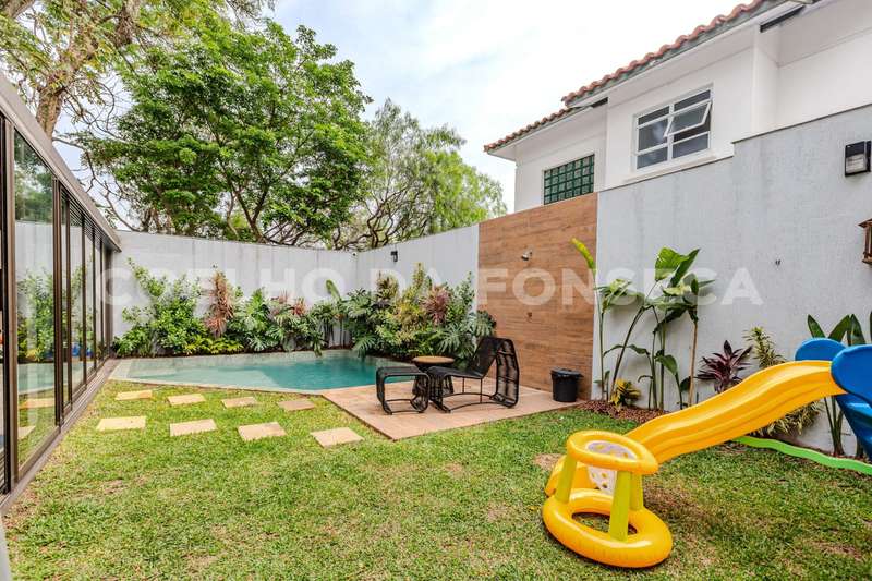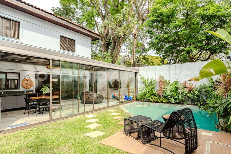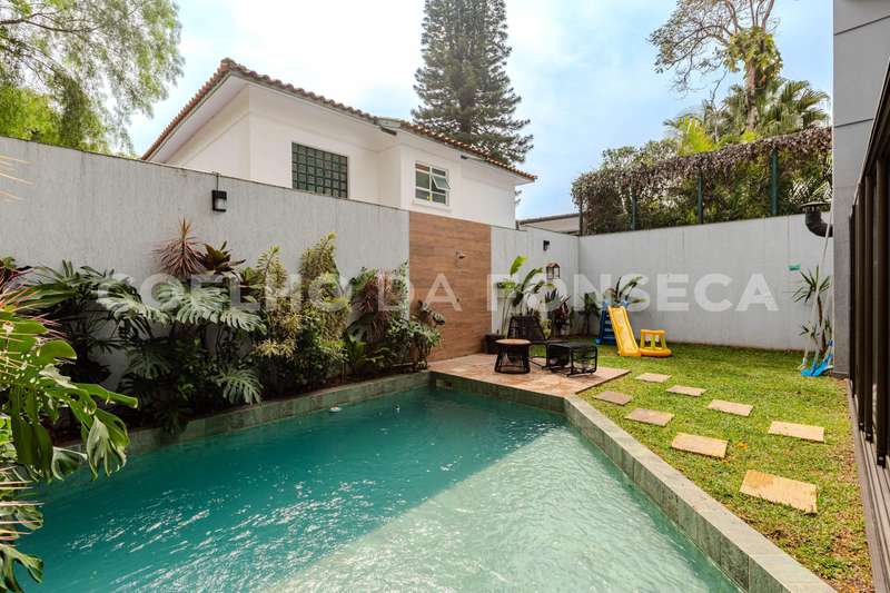 Casa reformada em rua tranquila e arborizada no Brooklin. Piso térreo todo integrado, amplo e com muita luminosidade natural, living para 3 ambientes, cozinha americana, espaço gourmet e charmosa área externa com piscina e gramado. Piso superior com 4 dormitórios, sendo 2 suites. Conta ainda com escritório, depósito, despensa e 2 vagas de garagem. Venha conhecer!