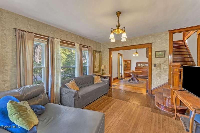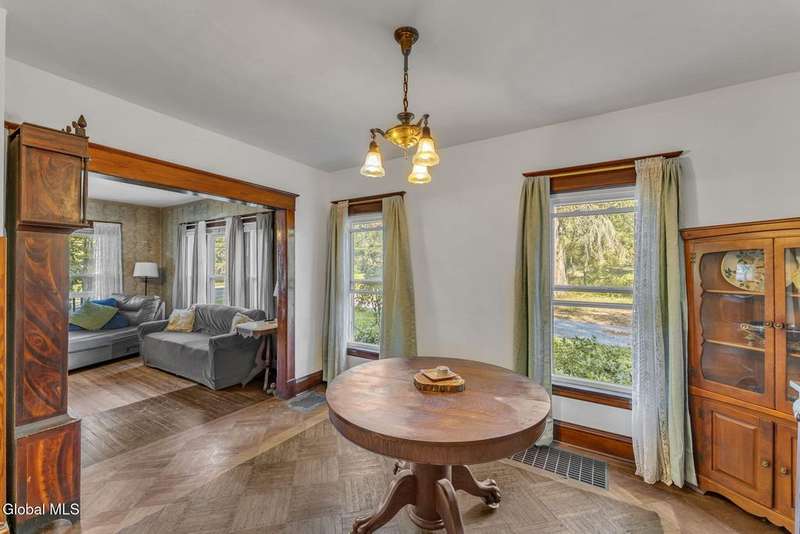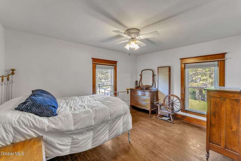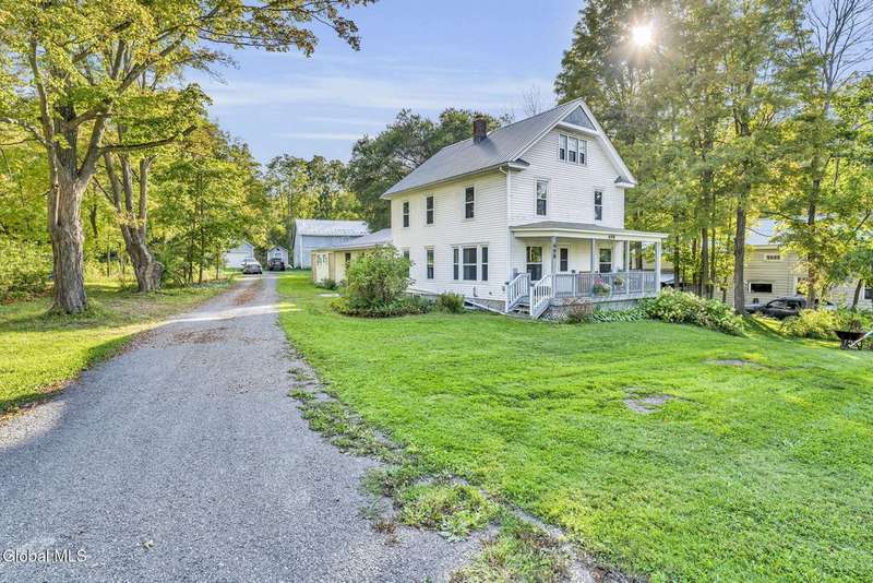 Available for the first time in over a century, this charming country residence on 6 ? acres is a perfect mix of generous space and convenience. This historic farmhouse is home to the once popular Mineral Springs, where people would stop regularly to collect the mineral water from the historic well, which still stands proudly in the front yard. The four-bedroom house has had numerous upgrades in recent years while still maintaining much of the original features including beautiful wood floors and woodwork. Recent upgrades include a new roof, new septic, rebuilt front porch, re-graveled driveway, newer hot water heater, a patio with 6-person hot tub and more. There is a primary bedroom on the first floor as well as another bonus room that could be a great office or additional bedroom. Upstairs has 3 more bedrooms, a recently remodeled full bathroom and kitchenette. Enjoy relaxing on the front porch or enjoy the enclosed back porch when you want more privacy. Additional buildings include garage with new door, barn and milkhouse. Enjoy the paths on the property and access to the creek which still has the foundational remains of an old lumber mill. Close to amenities and easy access to I-88 and Albany.