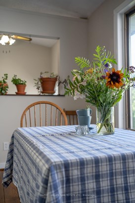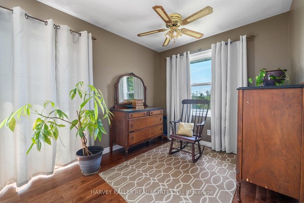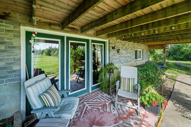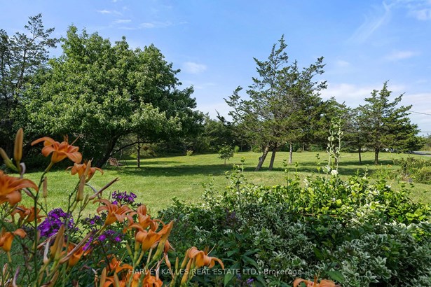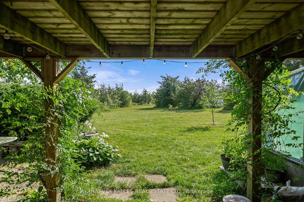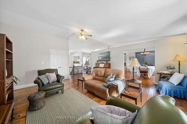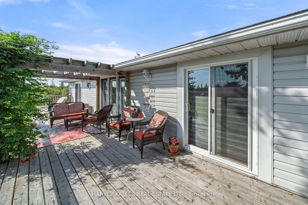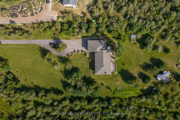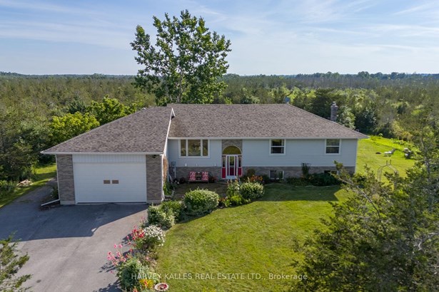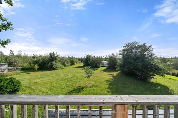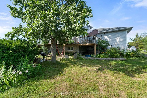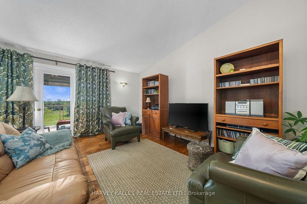 Country comfort meets spacious living in this bright and airy raised bungalow, offering over 1,800 sq ft of space to relax, entertain, and enjoy the peace of a quiet rural setting. Step inside to a sun-filled main floor where open, flowing spaces welcome you. The generous living room, bathed in natural light from south-facing windows, opens onto a large back deck, perfect for morning coffee or summer gatherings. The adjoining dining room leads into a charming kitchen and breakfast nook, where west-facing windows overlook lush perennial gardens, offering a beautiful start to your day. The primary bedroom is a true retreat with its private sitting area, ensuite bath, and patio door walkout to the deck: your own personal escape just steps from bed. Two additional bedrooms and a full bath complete the main level. Downstairs, discover a spacious rec room with its own walkout, plus two more bedrooms, ideal for guests, a home office, or hobby space. Set on just over 2 acres, this property is a gardeners dream with established perennial beds, space for chickens or vegetable gardens, and trails to wander at your leisure. Here, every season brings new beauty, and every day feels a little more connected to nature.