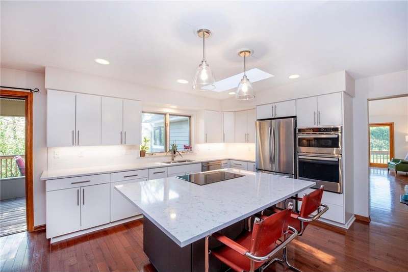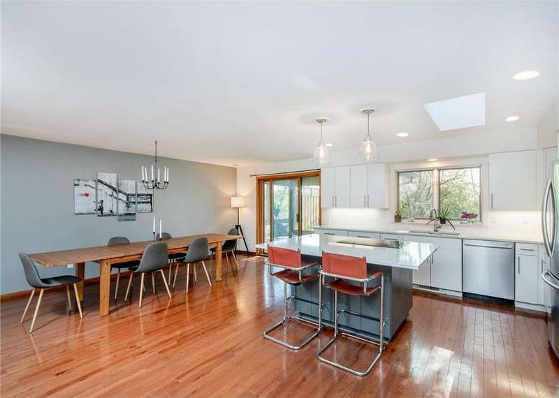 Stunning custom-built property with expansive, light-filled living areas, vaulted ceilings, and an updated gourmet kitchen with center island, quartz countertops, and stainless-steel appliances. Uniquely situated in the Macalester Groveland neighborhood, this home offers privacy and natural spaces on 0.31 acres of land. Rear screening in porch with views of the Mississippi River Valley. Lower level can function as additional living space or a complete mother-in-law suite. Updates to this home include a new oven (2025), fence (2022), and HVAC (2022). Sellers will provider a home warranty of the seller’s choice.