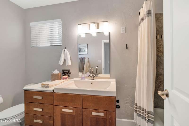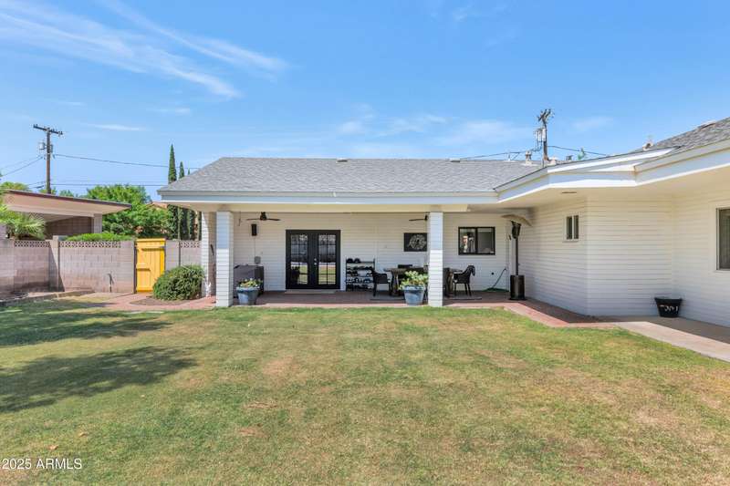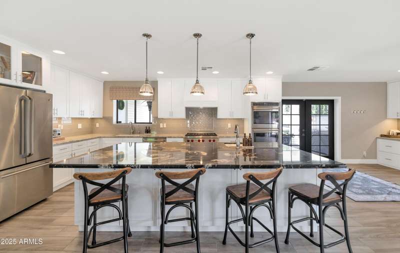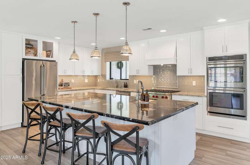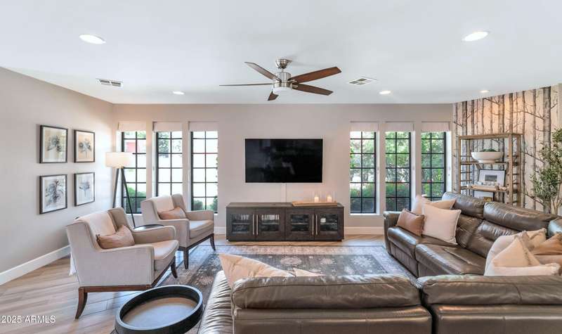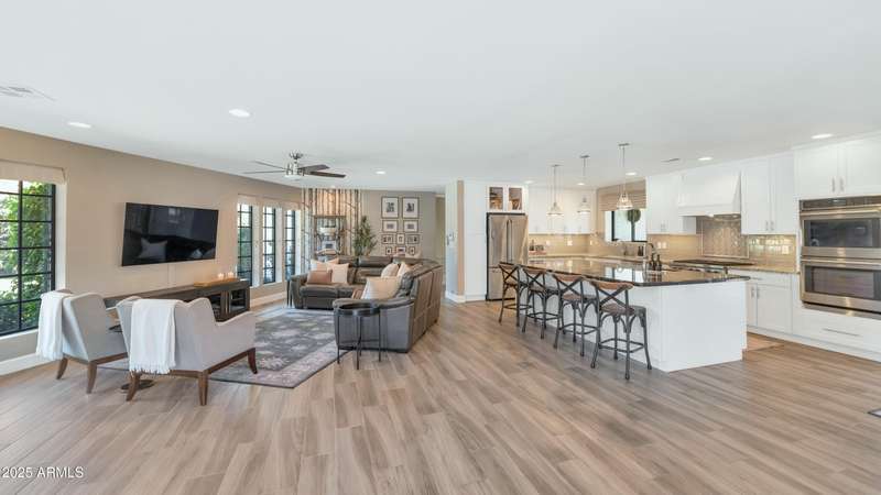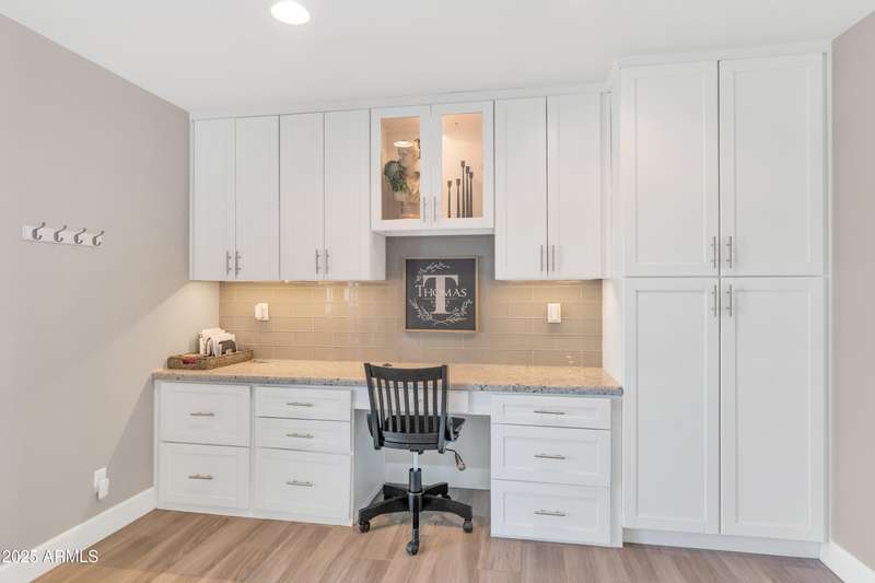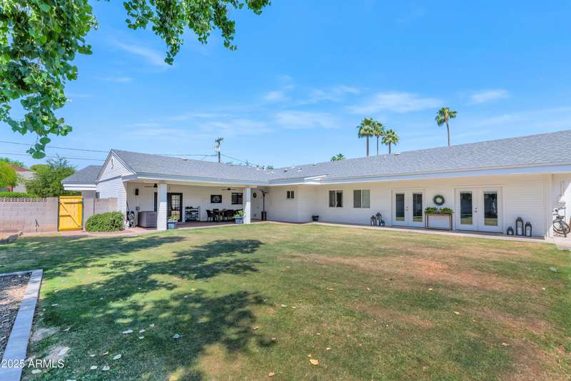 Charming family home just across from the Arizona Country Club located on Orange Blossom Lane. This home has an open floor plan and features 3 bedrooms, 2 bathrooms, built-in shelves with desk and 2 separate offices. Tile hardwood flooring and large windows in the great room allow lots of natural lighting throughout. The gorgeous gourmet kitchen with large island and granite countertops is equipped with stainless steel appliances, including a Wolf gas cooktop. The spacious primary bedroom has a great walk-in closet and a nice bathroom with a large shower. There are also two large bedrooms that share the second bathroom. Adding to its appeal are two additional rooms that currently serve as separate his and hers office spaces.