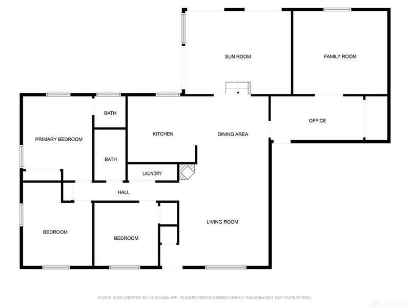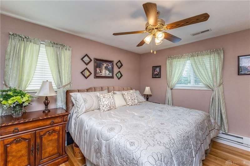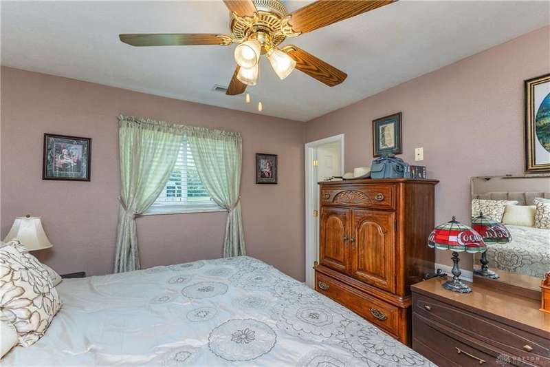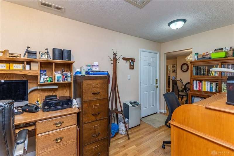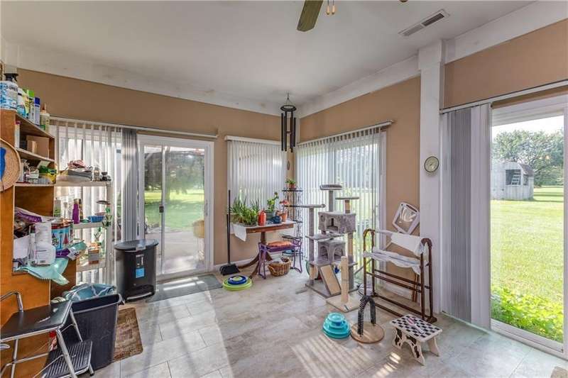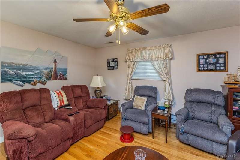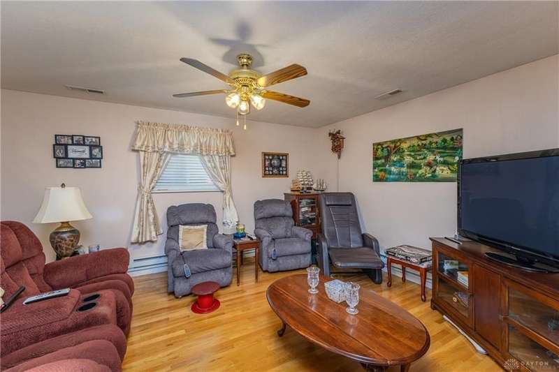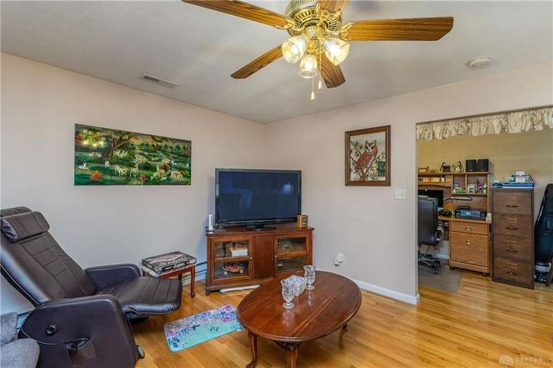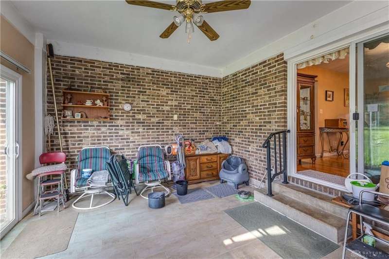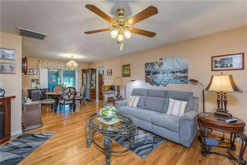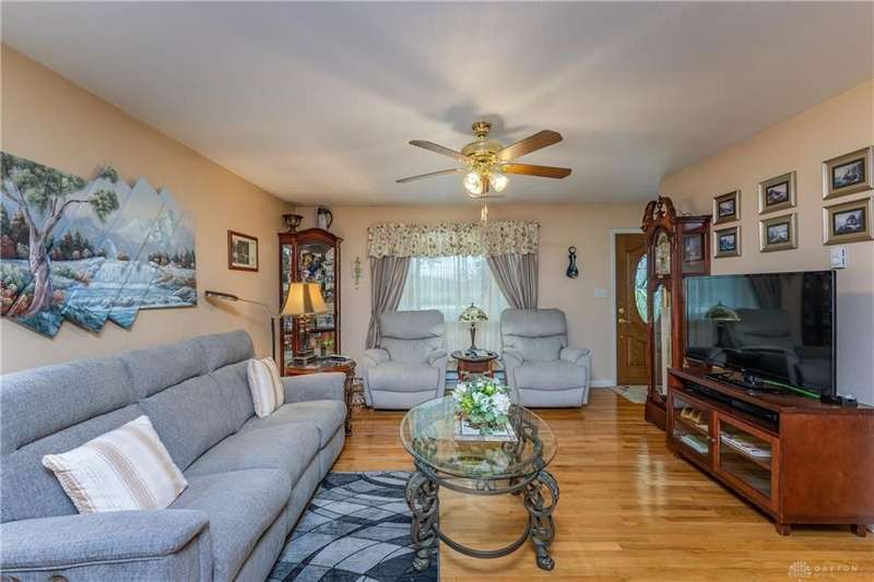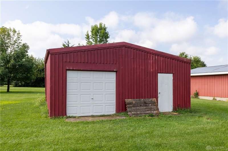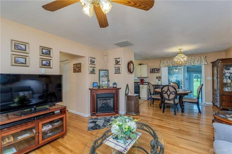 Welcome to country living. Maintenance free Total brick, 3 bedroom, 1.5 baths house on 1.8170 acres. Large living room with accenting gas fireplace opens to the dining room and remodeled kitchen featuring white wood cabinets, pantry with pull out shelving plus granite counter top. Appliances staying. Enjoy working at the kitchen sink overlooking the large rear yard, patio with a pergola. Study/office has extra large closet for storage. Relax in the private family room area. Hallway leads to 3 bedrooms, main bathroom. Primary bedroom has half bath with frosted glass window for privacy. Amazing real hardwood floors throughout. Replacement vinyl windows. Attached enclosed porch. Attached finished 2+ car garage with workbenches staying. Detached garage has workshop and 1 car parking area. Outbuilding shed with loft for storage. Playset staying. Mature trees and nicely landscaped.
