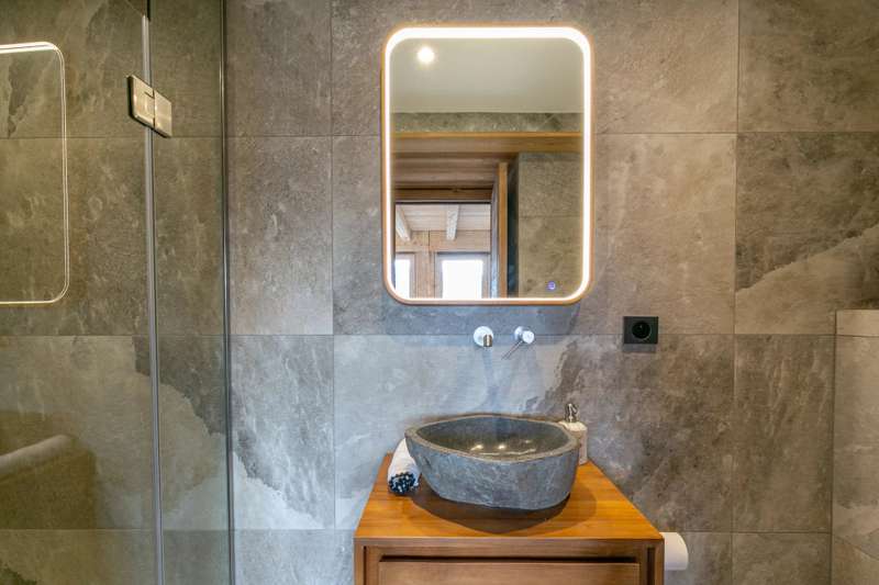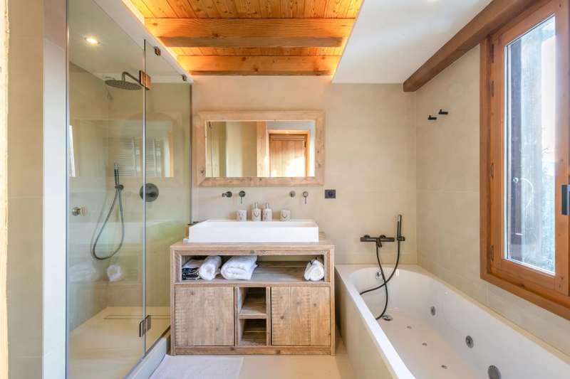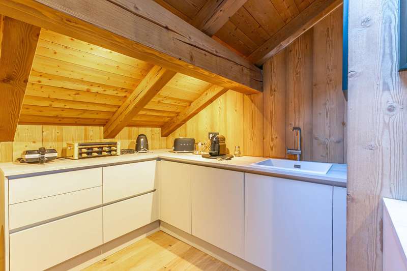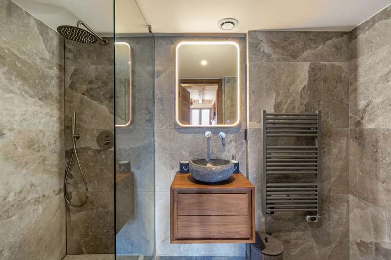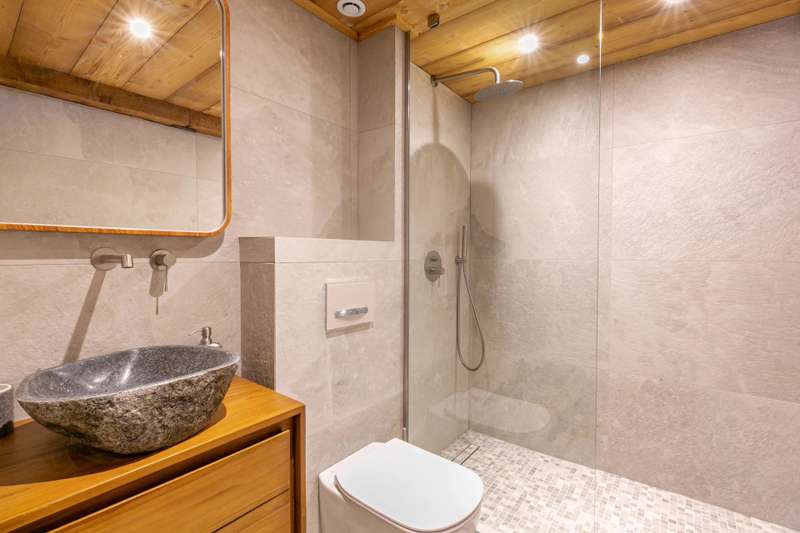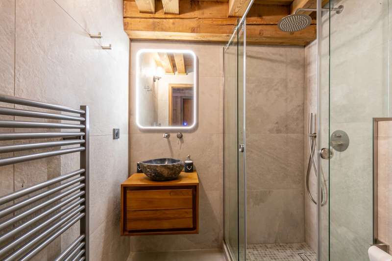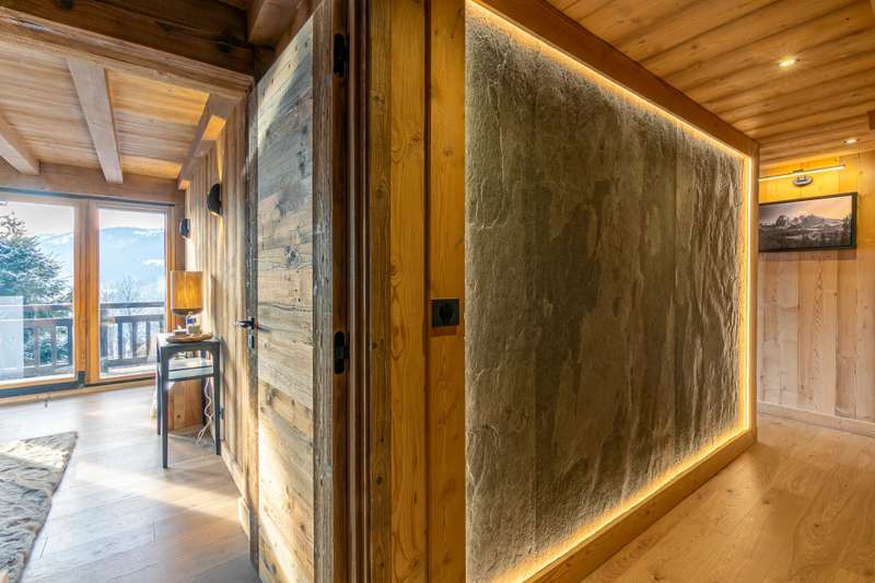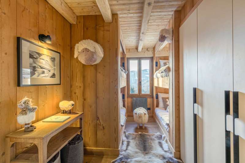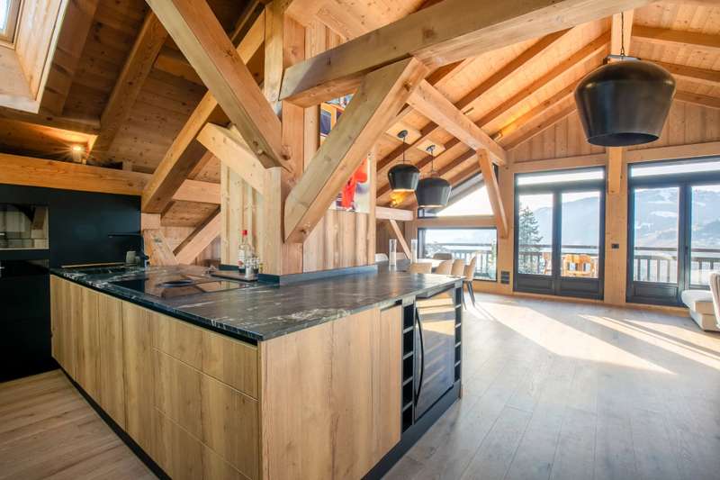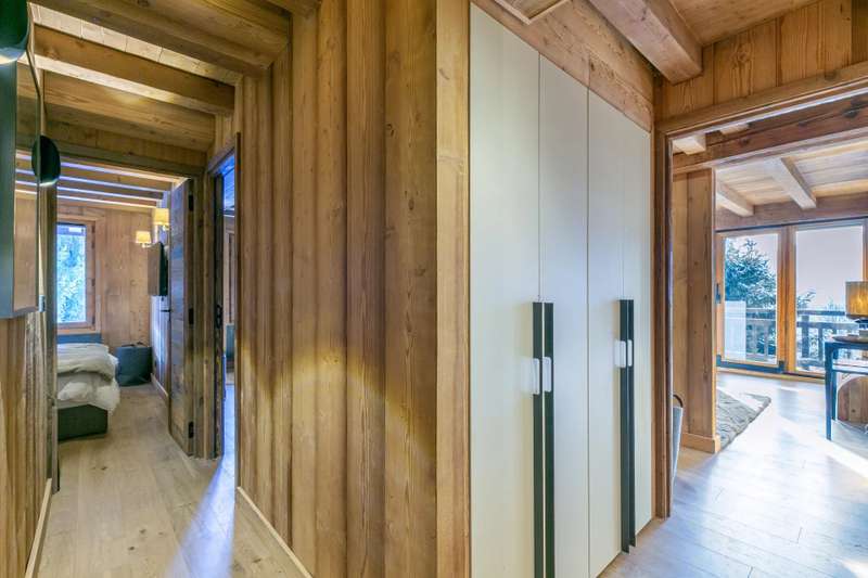 Ideally located on the heights of Megève, this flat enjoys a privileged location, close to the ski slopes and the Mont d'Arbois Golf course, with the option of returning by ski. Completely renovated, furnished and decorated to a high standard, it offers 230 sqm of living space (190 m² Carrez Law). On the first floor, a master bedroom with balcony has a bathroom with shower, bath and WC. Three further double bedrooms, each with storage space, have their own shower room and WC. A fifth bedroom, designed as a children's dormitory with four bunk beds, comes with its own shower room and WC. On the upper floor, a vast cathedral-style living room, bathed in light thanks to large bay windows, houses a kitchen that opens onto the lounge. This space leads onto a south-west-facing terrace with uninterrupted views of the Jaillet and Mont Charvin ranges. A utility room, equipped with a second fridge, an additional dishwasher and plenty of storage space, completes this level. The flat also has two guest WCs, one on each floor. The property is complemented by two enclosed garages, two large cellars and two outdoor parking spaces.