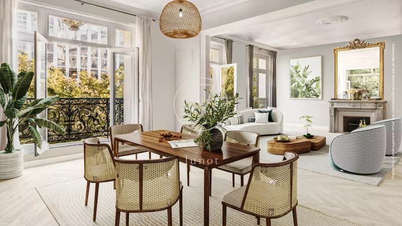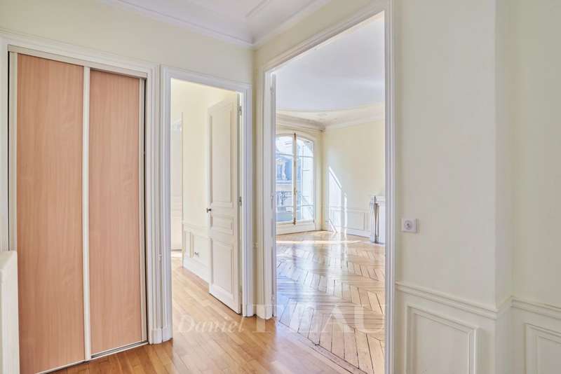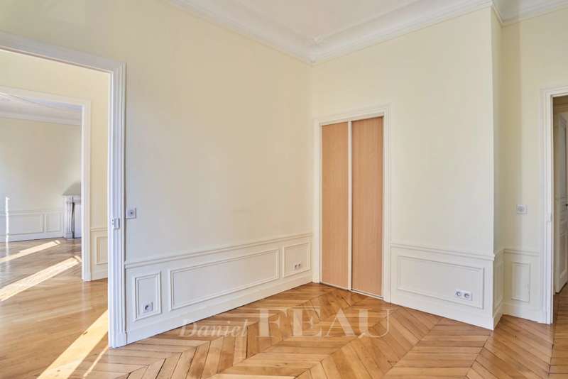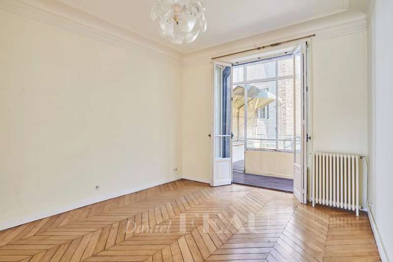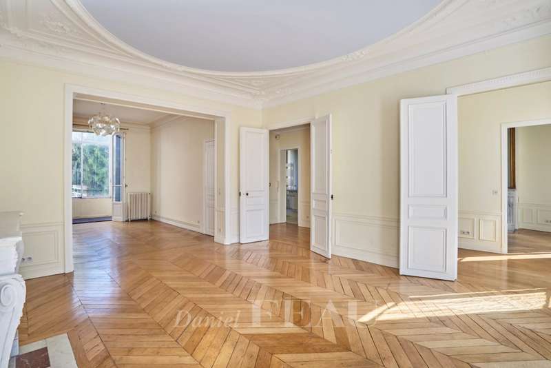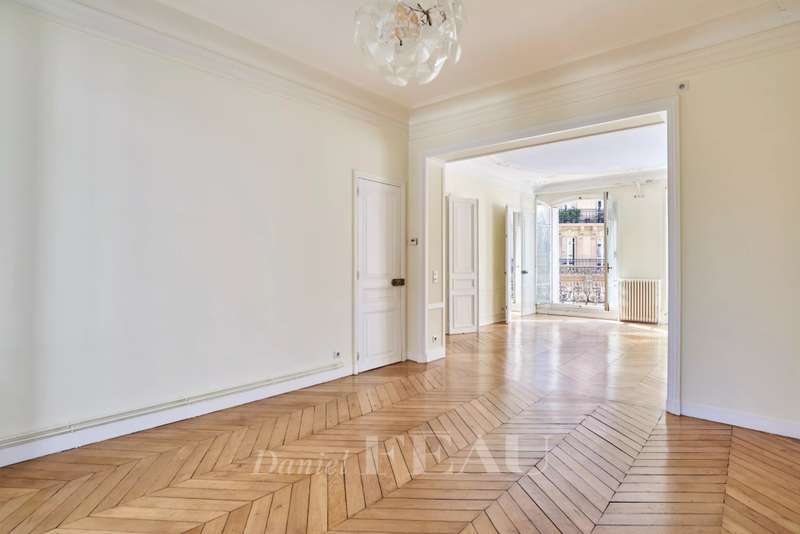 Rare on the market. This elegant dual-aspect apartment is on the 2nd floor of a superb private mansion dating from 1872 and located just 200 metres from leafy Parc Monceau. Offering 113.60 sqm of living space as defined by the Carrez Law, it includes a living/reception room, a dining room, a kitchen with dining facilities, two bedrooms, a study, a bathroom with a wc, a shower room and a separate wc. The study could create a 3rd bedroom if required. Ample fitted storage space. The apartment benefits from a terrace accessed by means of a delightful veranda and overlooking a peaceful garden, and a wide continuous balcony. With a cellar. The building is not equipped with a lift.