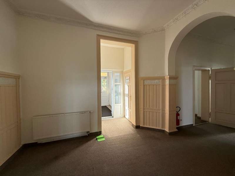 A spacious residential and commercial building in the form of a town villa dating from 1895 is for sale. This is the former factory owner's villa/cantor's house of the Johne-Werke company, later Perfecta. The property not only impresses with its historical architecture, but also with its functional floor plan and the wide range of possible uses. The property is situated on a practical and functional plot, which is completely enclosed by a fence and a wall. There are 4 parking spaces available at the rear of the building. The mezzanine floor extends over an area of around 140 m² and was last partially renovated in 2020. Historic stucco decorations are still present here. Until recently, it was used as a GP practice, but is currently vacant and therefore offers space for new business or residential ideas. Thanks to the flexible room layout, the mezzanine floor is suitable for various commercial uses, but can also be converted for residential purposes. The second floor with approx. 140 m² underwent extensive refurbishment in 2022 and has a small balcony. This floor is currently let as a medical practice with a remaining term of approx. 2 years. The monthly basic rent of € 1,150.00 for this unit represents an attractive source of income. The top floor with an area of approx. 110 m² offers potential for residential use. The last conversion was carried out here in 1988, so investors have the opportunity to design this space according to their individual ideas. An additional highlight of the property is the accessible basement of approx. 140 m², which can also be reached via a separate entrance from the garden. A large storage room in the basement has already been renovated and is lockable, offering additional storage options or usable space. In summary, this residential and commercial building offers versatile usage options and the potential to be individually adapted. The successful combination of historical architecture and modern elements as well as a flexible room layout make the property a worthwhile investment.