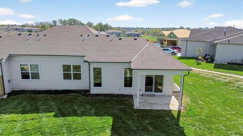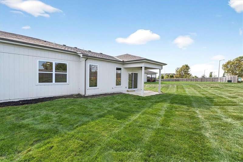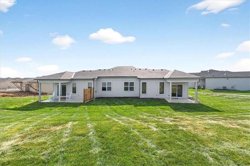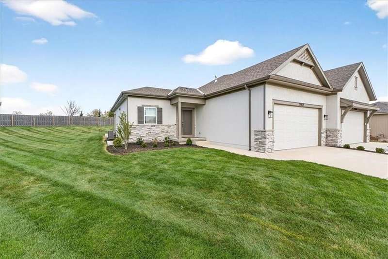 $15,000 Flex Spend From Builder To Buyer!! The Newberry by Lambie Homes is a stunning 3-bedroom, 2.5-bath reverse 1.5-story floor plan designed for modern living. The home is move-in ready and filled with luxury upgrades and perfectly positioned on a premium cul-de-sac lot in the sought-after, maintenance-provided community of Mize Hill. Step inside and enjoy the elegance of the Best Grade Interior Finish Package, showcasing top-tier quartz countertops, custom true shaker cabinets, and engineer hardwood floors. The gourmet kitchen is a chefs dream with a wood hood and vent liner, under-cabinet lighting, and a gas range. The open-concept great room features a floor-to-ceiling cultured stone with 40 Allusion electric fireplace and abundant natural light. The spacious primary suite offers a walk-in shower with bench seating, quartz-topped vanity, and generous walk-in closet. Additional upgrades include 8lb carpet padding for extra comfort and premium finishes in every space. Outdoor living shines with a covered patio and fully sodded, irrigated yard - maintained for you! Located in Lenexa with quick access to parks, shopping, dining, and major highways, this home blends upscale style with convenience. Experience the best of maintenance-free living. Open Wednesday-Sunday from 12:00p-5:00p - Reach out to agent for additional details on builder incentives for closings in 2025! *For Builder Incentive, contract must close on or before 12/31/2025*