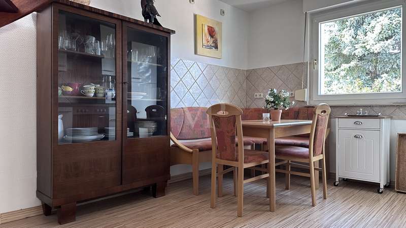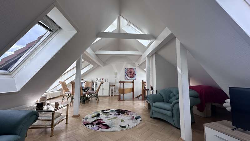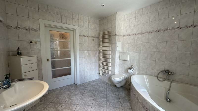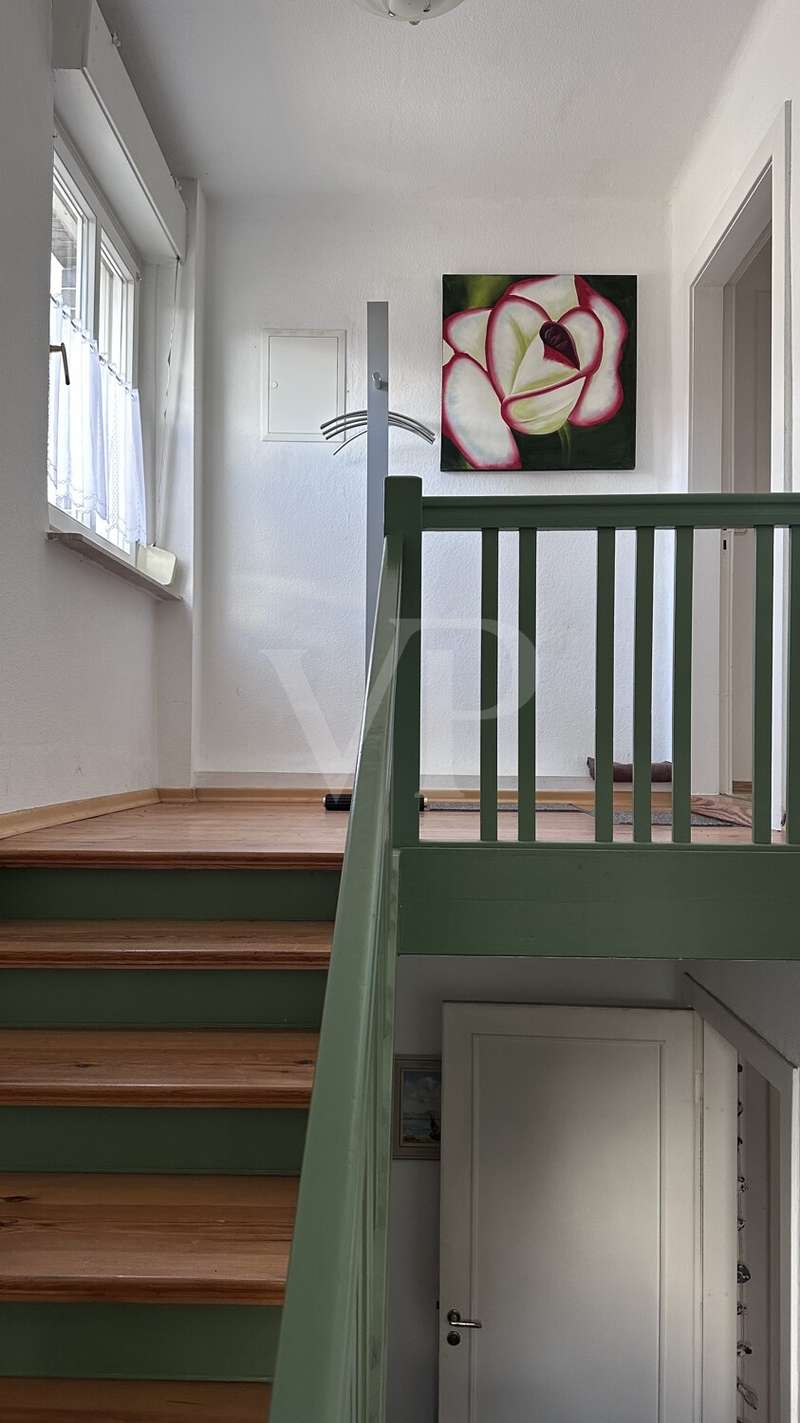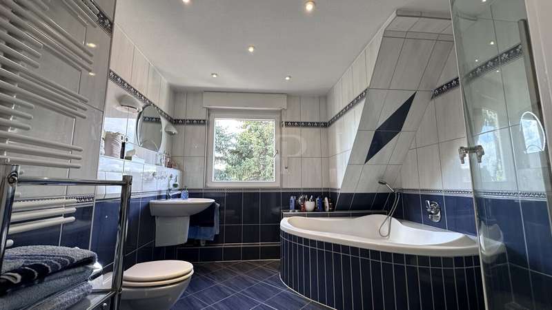 This well-kept and extensively renovated semi-detached house, built in 1935, offers a spacious and flexible room concept on approx. 165 m² of living space. The house is situated on a plot of approx. 799 m². The last modernization measures and the conversion of the attic were carried out in 1997. The property boasts a practical floor plan with a total of five rooms, including two spacious bedrooms and two fully equipped bathrooms. The living spaces are distributed harmoniously over three floors and offer plenty of room for individual requirements - whether for families, couples or people who value space for hobbies and offices. On the first floor, you are welcomed by an inviting living area with access to further rooms, a terrace and the spacious garden. A staircase made of pitch pine leads to the upper floor, the highlight being the converted attic, which leads from the upper floor to the attic via a spiral staircase. The open-plan attic impresses with electrically opening ridge windows, VELUX skylights and exposed beams made of white-coated wood. Additional living or work areas can be created here. Heating is provided by a modern central heating system. A Viessmann boiler was installed, combined with a hot water tank, all pipes and tube radiators from Arbonia, which ensure a pleasant indoor climate. The electrical installation includes high-quality Busch/Jäger components and is designed to meet current standards. An intercom system increases the comfort and security of the residents. A cable TV connection is available for entertainment and communication. In terms of fittings and construction quality, emphasis was placed on durability and living comfort: The roof covering, which was renewed during the refurbishment, is made of fired plain tiles, while the reinforcement of the roof structure ensures stability and energy efficiency. The roof drainage and all plumbing work was professionally carried out in copper sheeting. The rear façade insulation with polystyrene makes a significant contribution to the thermal insulation. Masonry barriers in the basement made of hammered-in sheet metal ensure permanent protection against moisture. High-quality materials were also used in the interior: The solid wooden stairs with pitch pine planks give the staircase a special touch. Room doors and door frames, some with glass cut-outs, are made of wood, while real wood blinds give the windows an elegant and practical look. The two bathrooms have a timeless design and meet the requirements for functionality and comfort. Overall, the house presents itself in a modernized condition and offers you all the prerequisites for a pleasant life with individual scope for design in a sought-after location. For further information or to arrange a viewing appointment, please do not hesitate to contact us. Let us convince you of the possibilities of this property.