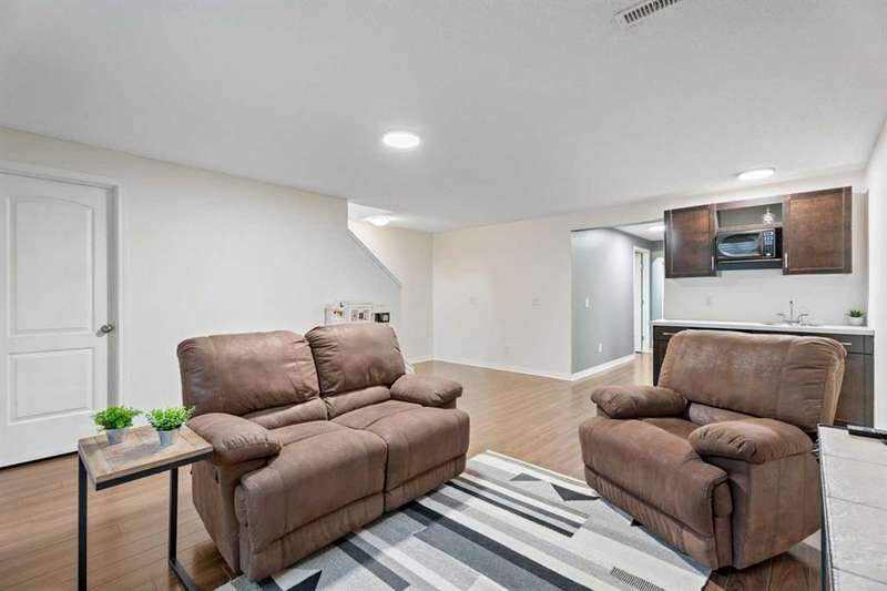 Lake Living Awaits in Auburn Bay! Fall in love with this bright and stylish lake-access bungalow featuring vaulted ceilings, large windows, and a fresh, modern feel. Recently updated with new flooring (Oct 2025), brand new kitchen appliances (fridge, stove, microwave hood fan – Oct 2025), and freshly painted, inviting, and ready to enjoy. The open concept layout is perfect for entertaining with seamless flow between the kitchen, dining, and living area, ideal for gathering with friends and family. You've got two bedrooms on the main level or use one as an office if you work from home. Downstairs you will find a finished basement offering offers a spacious family room with a wet bar, two additional bedrooms, a storage room and a 4-piece bathroom. The fenced backyard offers a spacious deck for gatherings or relaxing in the sun, plus plenty of room to build your dream garage. Enjoy Auburn Bay’s four season lake lifestyle: swim, paddleboard in the summer, skate and join community events in winter. Close to the South Health Campus, movie theatre, shops, top restaurants, and the off leash dog park. This is the one you’ve been waiting for—fresh, move-in ready, and full of charm. Welcome home to Auburn Bay!