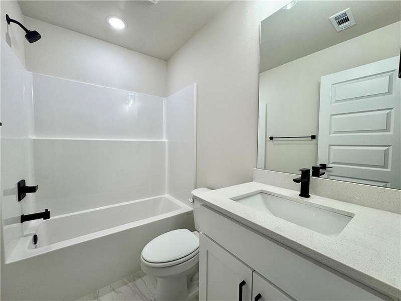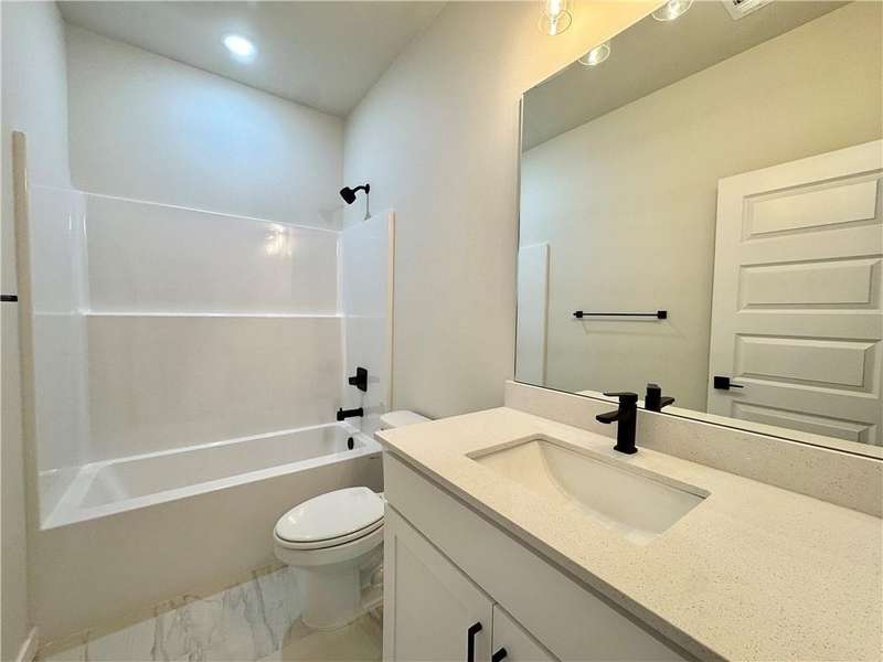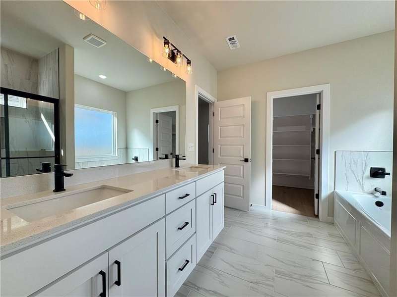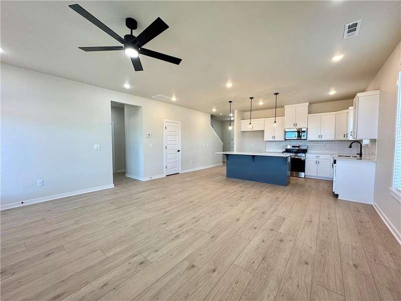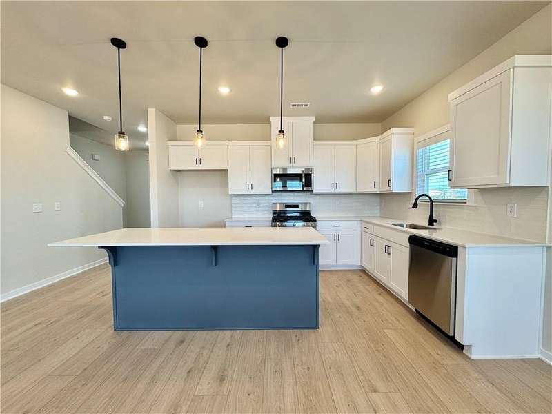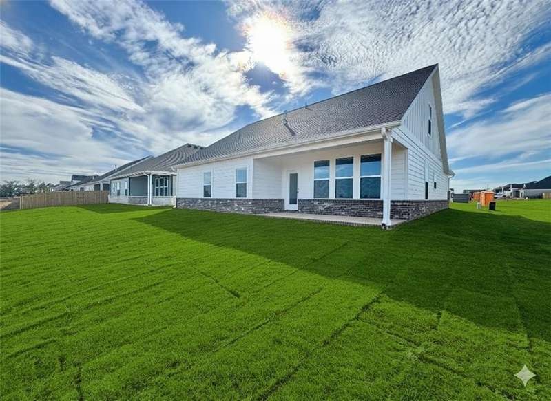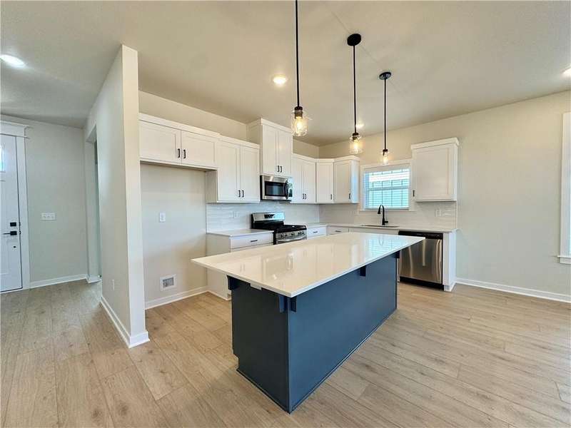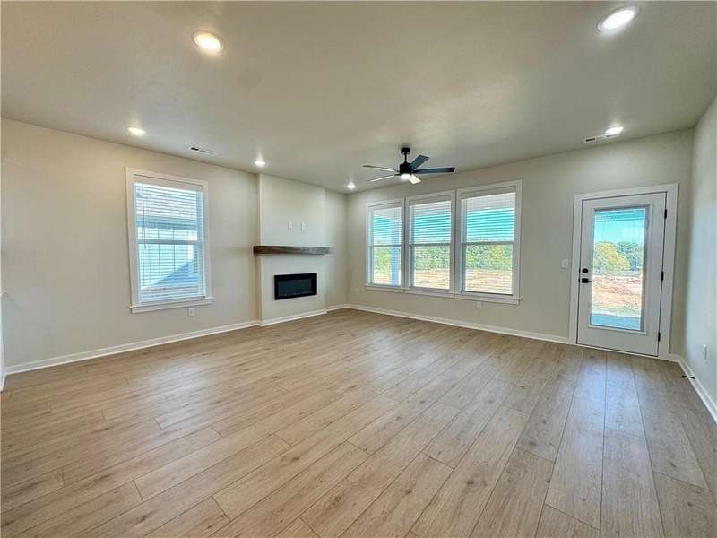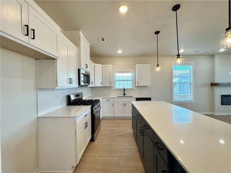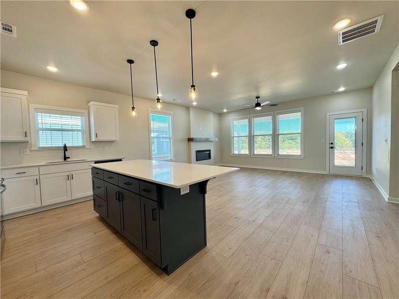 Fence, blinds and gutters included! Discover your dream home in the sought-after Osage Hills neighborhood. Emmet plan with garage on the right and West facing! 9 ft ceilings, linear electric fireplace in the living room, LVP flooring throughout the main living areas and primary bedroom, quartz countertops and more. Chef's kitchen boasting frigidaire stainless steel appliances, gas range, pantry, quartz countertops, bar pull handles and large island, all complemented by gorgeous backsplash. Luxurious primary bedroom features abundant natural light, while the spa-like primary bathroom offers a walk-in shower, tub, double sinks, and spacious walk-in closets. Additional features include a secondary bedroom downstairs, two large bedrooms upstairs and a separate laundry room. Nestled on a generous lot with covered patio that overlooks the serene sodded, fully fenced backyard. Sturdy concrete siding & brick! Model home located at 6008 SW Coywolf St- Lot 122.
