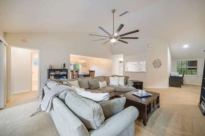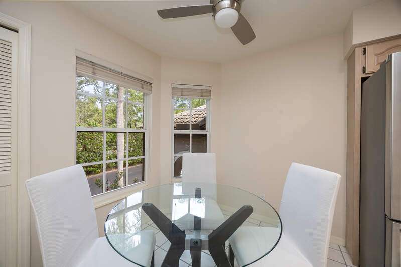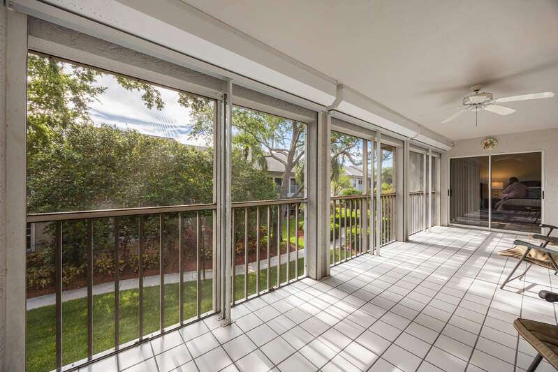 Just Listed! Welcome to Tra Vigne, a charming enclave of just 77 coach homes nestled within the desirable Vineyards community. This beautifully maintained second-floor residence features a spacious, open-concept great room floor plan with 2 bedrooms, 2.5 bathrooms, a den, and a one-car garage. Designed to live like a single-family home, it offers a wide layout with vaulted ceilings, abundant natural light, and an airy, inviting ambiance. As an end unit, it boasts enhanced privacy and a bright interior. The generous lanai-ideal for entertaining-includes hurricane protection and overlooks serene surroundings. Additional highlights include a newer A/C system and updated appliances. Just a short walk to one of four community pools, this gated neighborhood also offers ample guest parking and is conveniently located near shopping, dining, and entertainment. Vineyards Country Club, offering optional memberships with access to a state-of-the-art wellness center and spa, two newly redesigned championship golf courses, tennis and pickleball courts, bocce, and a vibrant calendar of social activities. Experience the Vineyards lifestyle-refined, active, and welcoming. This is a home you won't want to miss!