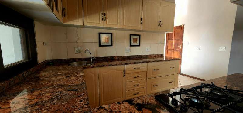 this delightful home offers you 3 bedrooms and 2 bathrooms on ground level, with large entertainment area leading out onto tranquil garden with outdoor pool and braai. Upstairs you have a kitchen fitted with gas stove. Granite tops dining space. upstairs bedroom with bathroom.. Call to view this one of a kind home