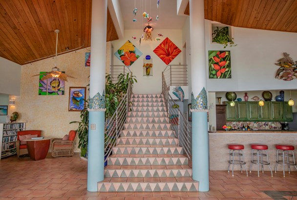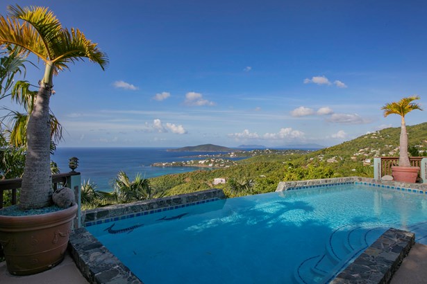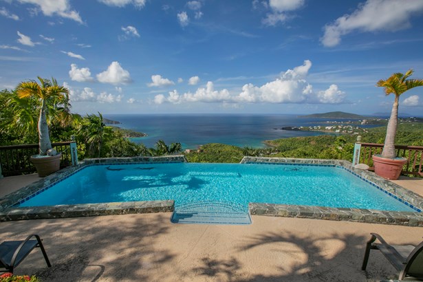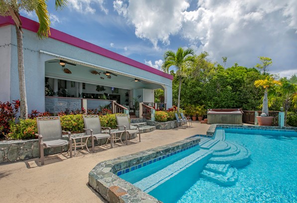 Villa Amour is a successful vacation rental that is also ready to be a home with an apartment. The expansive view overlooks Neltjeberg Beach all the way to the BVI. The property has a lush, remote feel while still being 5 minutes from a grocery store. The main house has 4 bedrooms with their own AC units and bathrooms, and an additional half bath on the main floor. The spacious living room has pocket doors that allow a seamless flow to the back porch, pool and hot tub. The apartment is a spacious studio with AC and a separate entrance. This concrete home is also equipped with a 25kW diesel generator w/300 gallon tank, and 45 solar panels with 9.2kW capacity. The sale includes adjoining lot 16-Rem Estate Neltjeberg.