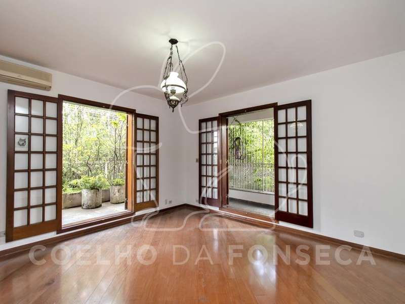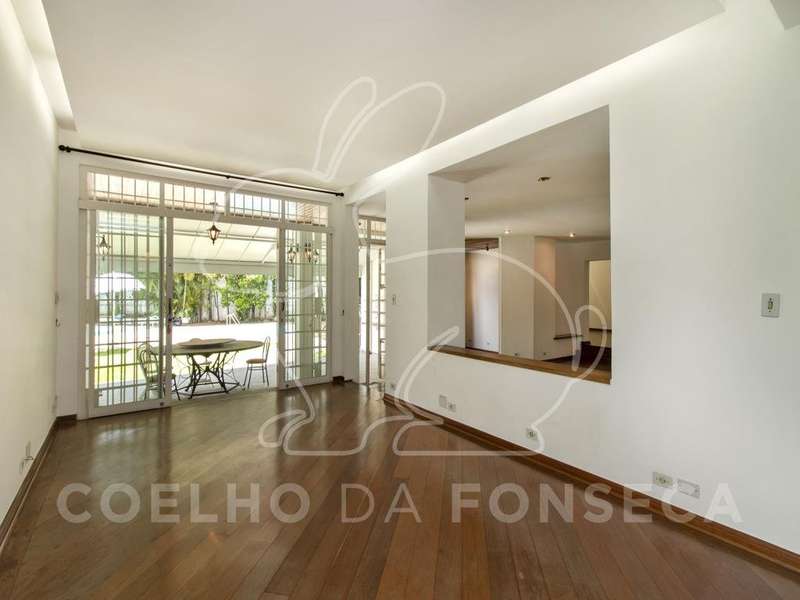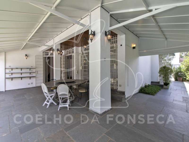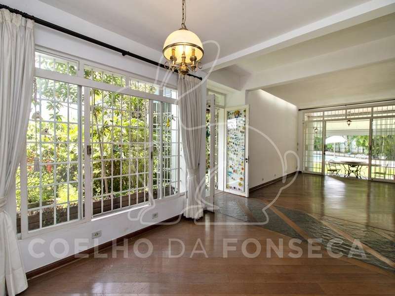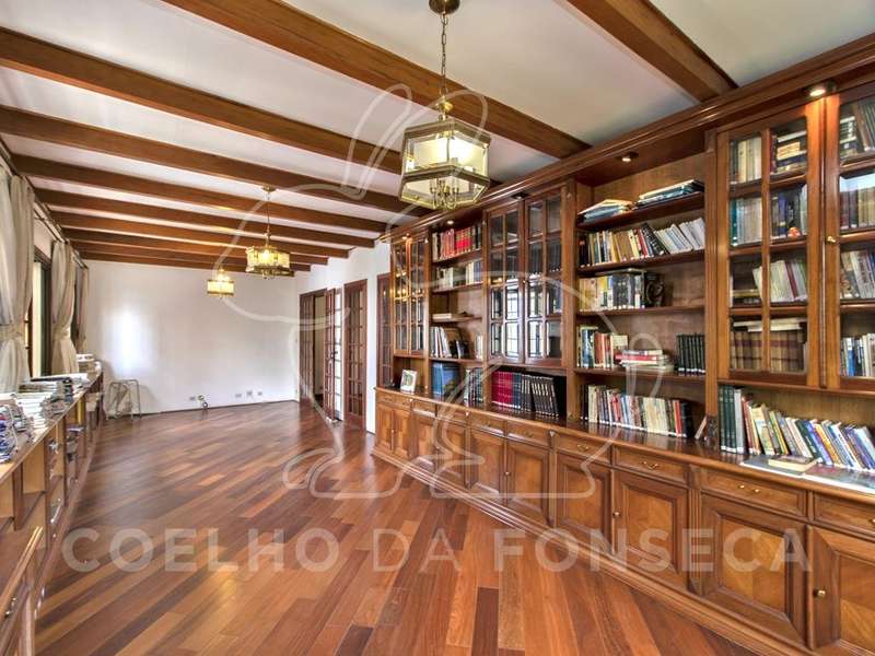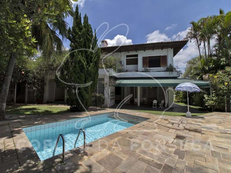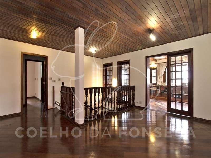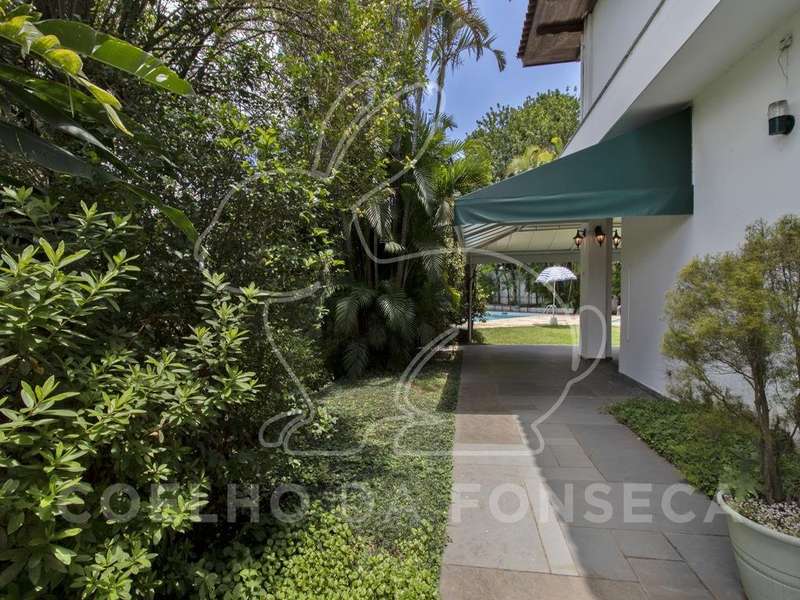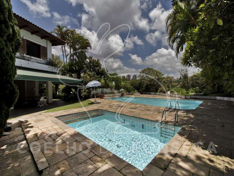 Casa em rua fechada com seguranca 24hs.Planta inteligente com iluminacáo natural, ambientes voltados para o belíssimo jardim com 2 piscinas, sauna, quadra squash, salao, árvores frutíferas, horta. Living com lareira, sala de jantar, de almoço, bar, adega e sala intima Piso de taboas largas trabalhado com ardósia, cozinha ampla com ilha e copa, dispensa em L de mármore, porão e varanda Suítes com varandas, suíte máster com cinemateca, lareira,ampla biblioteca.