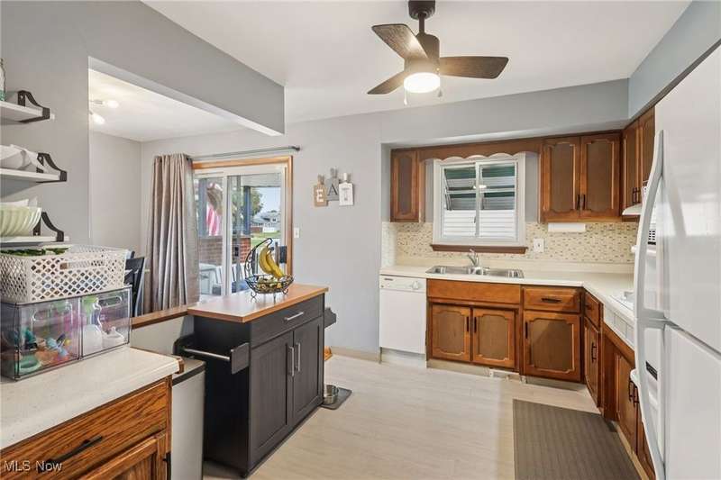 Welcome home to this well cared for 3-bedroom 1.5 bath beauty in the heart of Kamm's Corner. Featuring hardwood flooring throughout the main living areas, this home combines mid-century modern appeal and old-world character. The Kitchen provides a functional layout with plenty of prep space, and an eat-in dining area ideal for everyday meals or entertaining guests. Large great room with wall of windows allows for lots of natural light. Upstairs you'll find the primary bedroom with hardwood floors and 2 closets along with 2 additional bedrooms, both with hardwood floors, that can serve as guest rooms, home office, or hobby spaces. Updated full bath with tub/shower completes the second story. The lower level brings additional space for family or company with a half bath, laundry, and walk-up access to the backyard. Outside, you'll love the large fenced-in yard perfect for relaxing, grilling, gardening, or pets- and the 2-car detached garage offers ample room for parking, storage, or workout area. Situated in a desirable location close to shops, dining, parks, and all that Kamm's Corner provides, this home is full of charm inside and out.