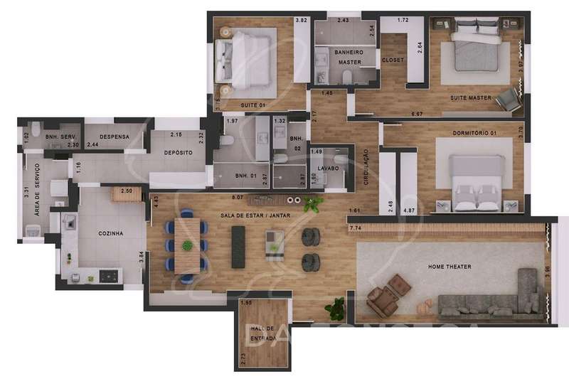 Contam com os acabamentos top de linha do mercado, sendo piso de madeira maciça Indusparquet, metais Hansgrohe, iluminação 100% led, pisos molhados Decortiles, cooktop Electrolux, entre outros. Além disso, toda a infraestrutura para automação completa, ar-condicionado, elétrica, hidráulica, internet e sistema de aquecimento de água é trocado.