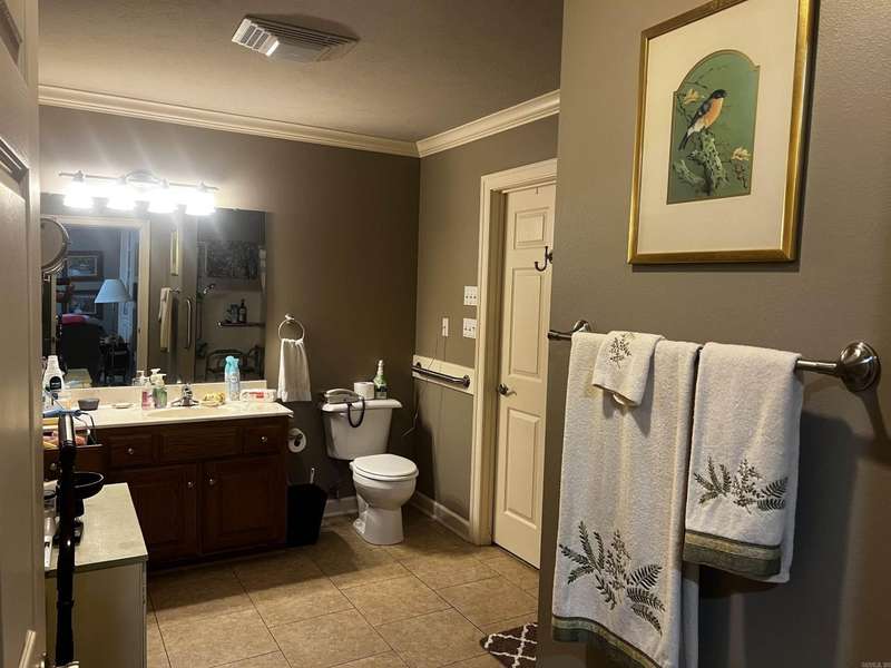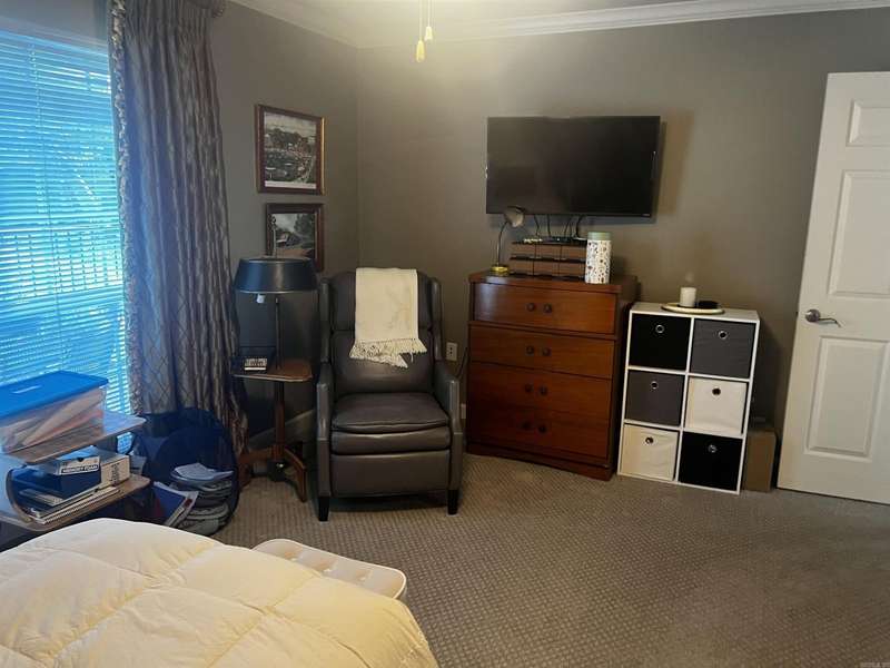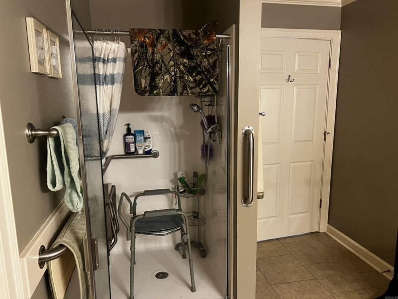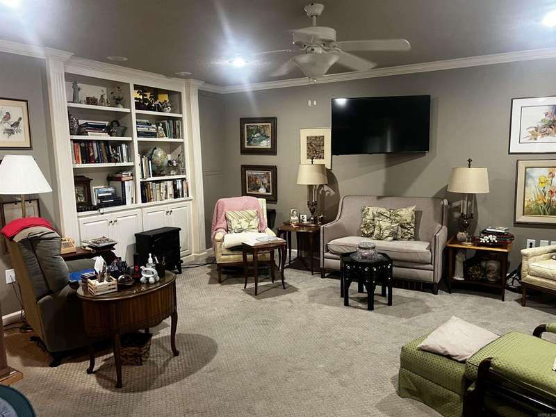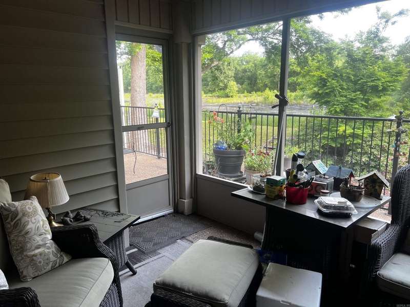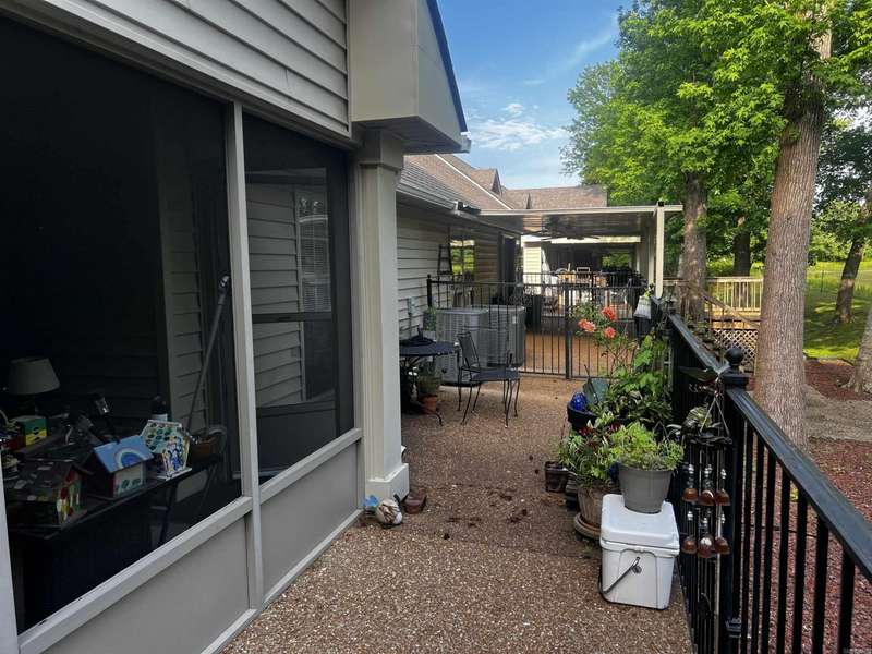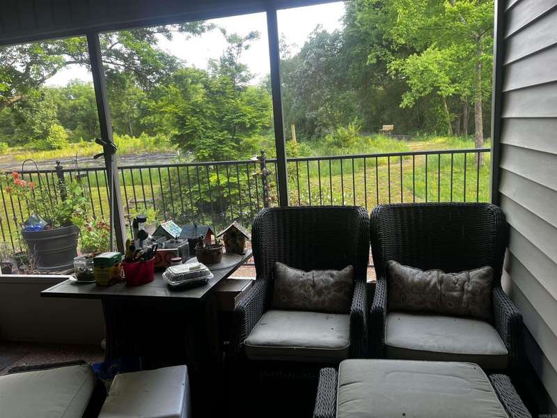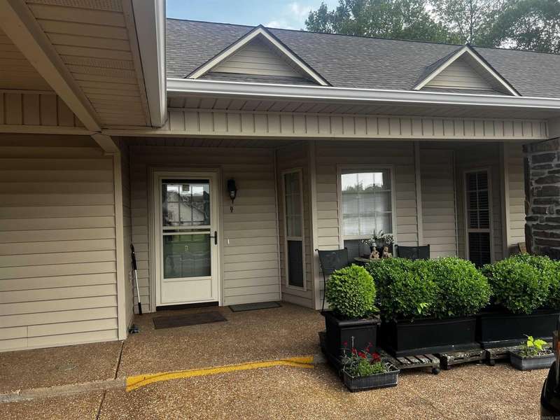 Condo with Custom home updates, home was remodeled by Cresswell Builders, with Crown molding throughout, and 3 1/4 door and window trim, custom built in book shelves, updated flooring and appliances, The back patio is partially screened in, so you can enjoy sitting outside year round, quite private views of the woods and pond, you can see the Sulfur Creek Walking and Biking trail from the back patio, its a 10 mile long paved trail, the entire building has just installed a new roof March 2025. You like to fish or boating? Greers Ferry Lake and Little Red River are just 5 minutes away. Designated cover parking, home is handicap accessible