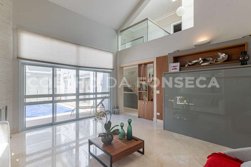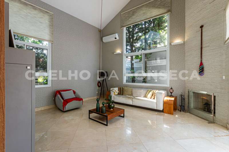 Casa no condomínio ALPHAVILLE 11, com 443m² área construída, 3 dormitório(s), 3 suíte(s), 3 vaga(s), 5 banheiro(s), piscina, escritório, sauna, depósito, mobiliado (a), ar condicionado, dep. de empregados, reformado (a), varanda, aquecedor solar, pé direito duplo.