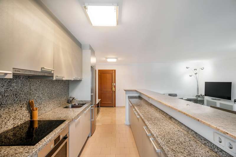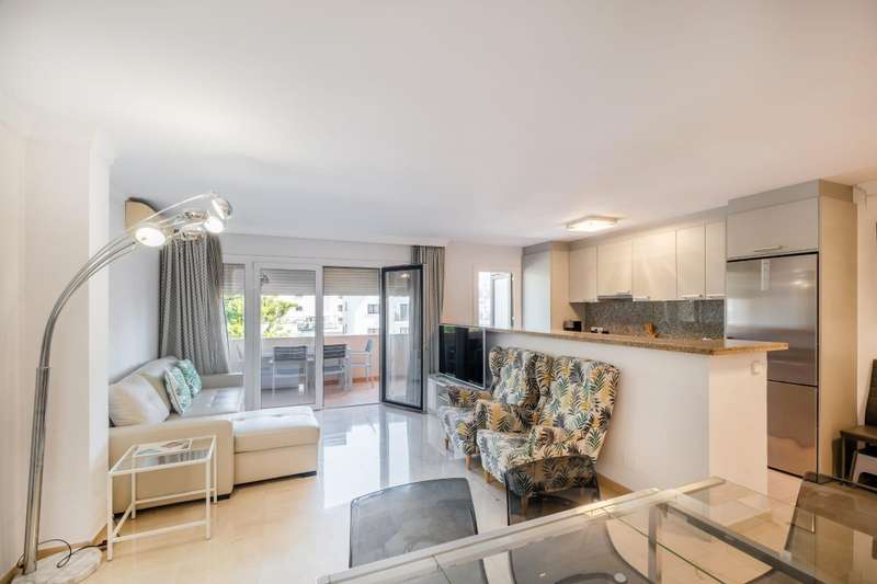 This beautifully renovated apartment offers a blend of contemporary comfort and Mediterranean charm in one of the most prestigious locations on the Costa del Sol. Enjoying an excellent east-facing orientation, the property is bathed in morning sunlight, creating a bright and welcoming atmosphere throughout the day. The apartment features two spacious bedrooms with fitted wardrobes and two stylish, fully renovated bathrooms, both designed with modern fixtures and elegant finishes. The open-plan living and dining area seamlessly connects to a private terrace and a balcony, perfect for enjoying breakfast in the sun or relaxing in the fresh coastal breeze. The modern kitchen is fully equipped with high-quality appliances and offers plenty of storage and workspace, ideal for those who love to cook or entertain. Recent upgrades include new exterior doors and double-glazed windows, which improve insulation, soundproofing, and energy efficiency. The interiors are tastefully decorated in neu