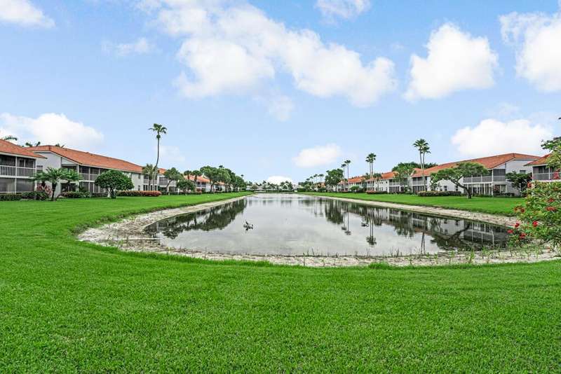 WATER VIEWS ARE OUTSTANDING! BEST PRICE ADJUSTMENT! PRISTINE! From the moment you enter this open&airy bright corner ground floor villa, you are greeted with light & sense of peace&serenity. The enclosed xlarge lanai adds lots of space in addition to the already large great room.Covered parking, accordian shutters,& extra storage room are a big plus! Roof taken care of by Condo assoc. A/c is newer too!ThIs 55+ community boasts amazing amenities & included in HOA monthly dues is state of art fitness,cable Tv+ hi speed internet/wi-fi,landscaping,so much more! A magnificent fully remodeled clubhouse & seller has paid full assessment.WOW! GREAT OPPTY for a buyer to enjoy all the new amenities! 6 Pickleball, 7 Tennis crts, pools,restaurant, shows,clubs,cards, so active! LOVE!
