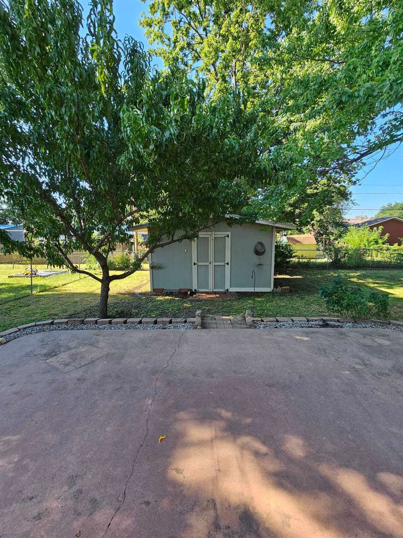 Don't sleep on this jewel! Very well maintained home in quiet, mature neighborhood. Perfect family home, whether you are just starting out or you are ready to retire. Home has three bedrooms and it has an 8x8 concrete storm room off of one of the bedrooms that opens up all kinds of possibilities: play room, sewing/craft room, man cave, extension of the bedroom, and of course - a storm room! For Kansas storms this is a definite plus. This home also features a very unique Jack and Jill type bathroom. The hall bath features a sink and toilet. The master bath also features a sink and a toilet. They both open up to a separate room with a walk in shower. So there are 2 sinks, 2 toilets and one shower - in 3 separate rooms. See the pictures. Kitchen was remodeled a few years ago with blond wood and solid corian countertops. Bathroom countertops are also corian. Backyard features a nice sized shed with concrete floors and electricity. Gutters have had covers installed as well. This is a super home - don't miss out!