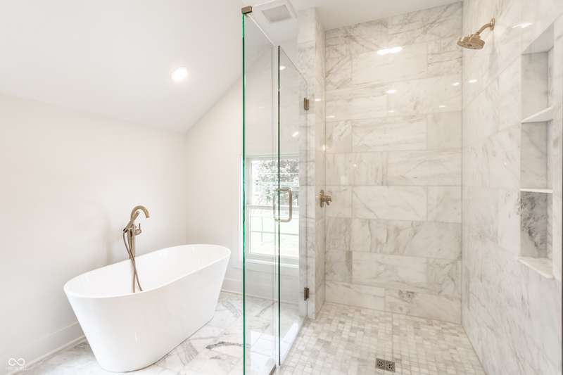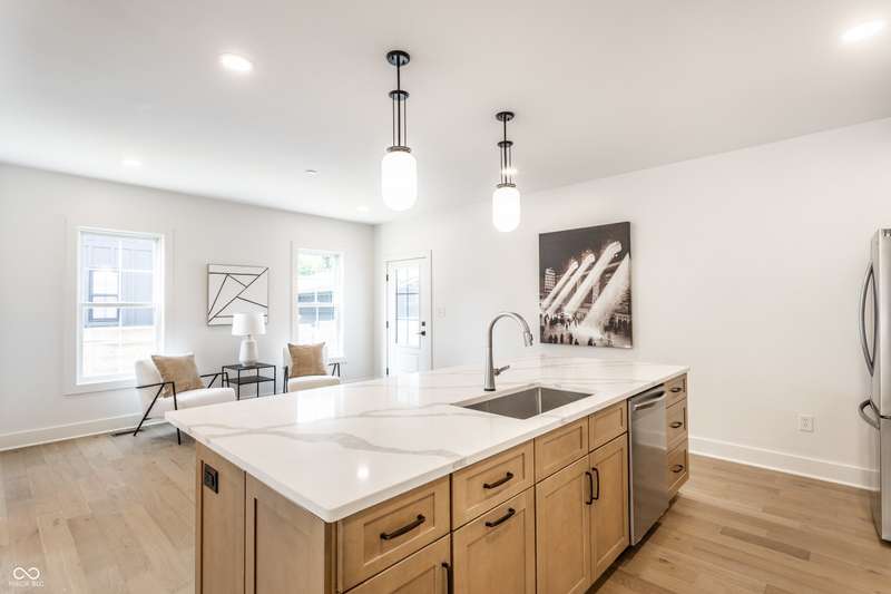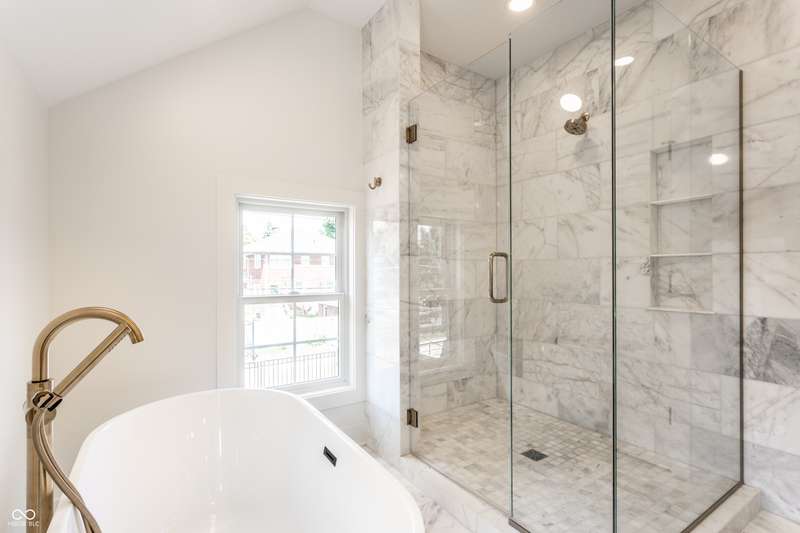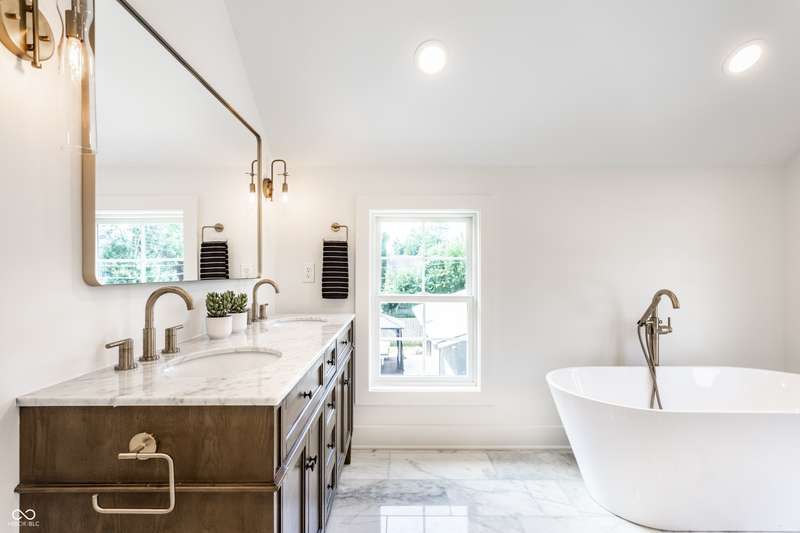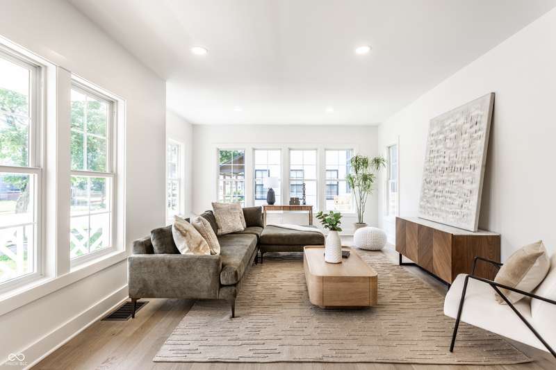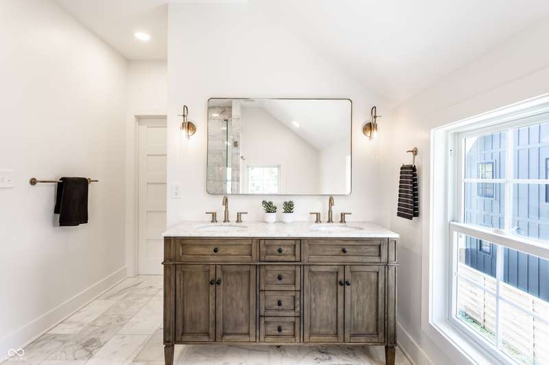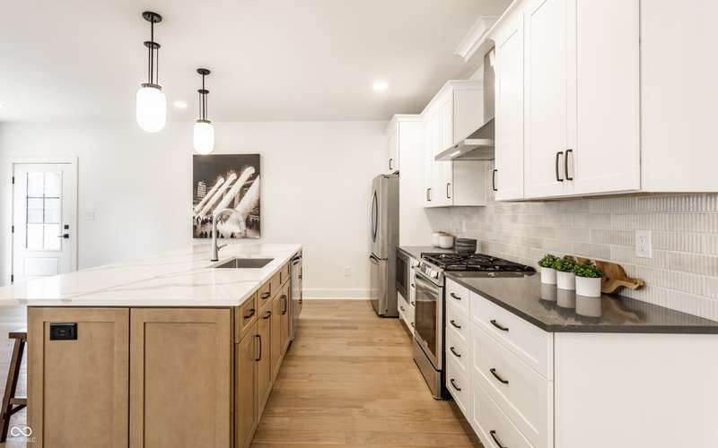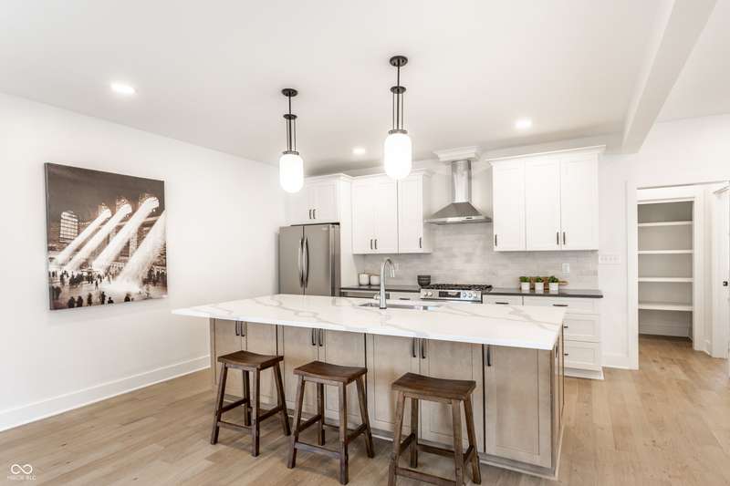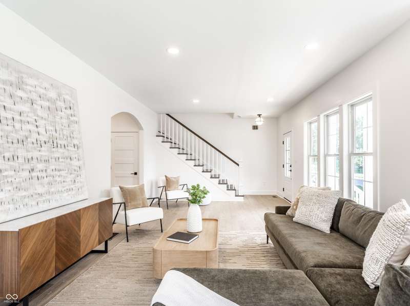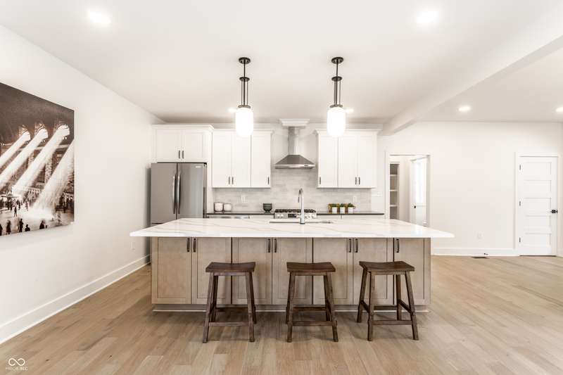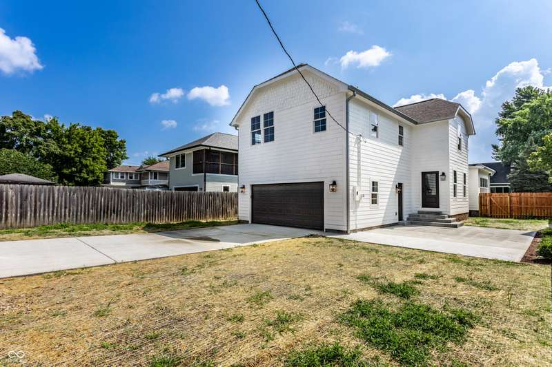 Welcome home! This beauty in south Meridian-Kessler, REBUILT by Jensen Design, a premier renovation company in Midtown! Quality craftsmanship stands out the moment you walk through the door. The original Dutch colonial architecture of this home has been thoughtfully maintained and then fully reimagined as a custom built new construction home with over 3300 square feet of finished living space, 4 bedrooms 2 full and 1 half baths with an attached garage and finished basement. This open-concept home features a bright great room, spacious dining room, and a stunning custom, chef's dream kitchen with plenty of space for gathering, cooking, and connecting. The main level includes a stylish half bath tucked off the mudroom, plus all new hardwood floors and 9' ceilings with architectural touches that add warmth and character. Upstairs, a large open landing leads to four generous bedrooms, including a true primary suite with space for a king-size bed, a beautiful en suite bathroom with double vanity, walk-in shower, separate soaking tub and a large walk-in closet. The second full bath includes a double vanity and separate water closet-perfect for busy mornings. Laundry is conveniently located upstairs near the bedrooms. Additional highlights include dual HVAC systems, all new electrical with a 200-amp service, all new Anderson windows, all new PEX plumbing and all-new siding and new roof. The fenced backyard features a large patio-ideal for summer fun and backyard play, and alley access to the oversized attached garage. Set on a quiet, welcoming street with other renovated and new-build homes, this home offers the style, space, and smart layout you have been looking for!