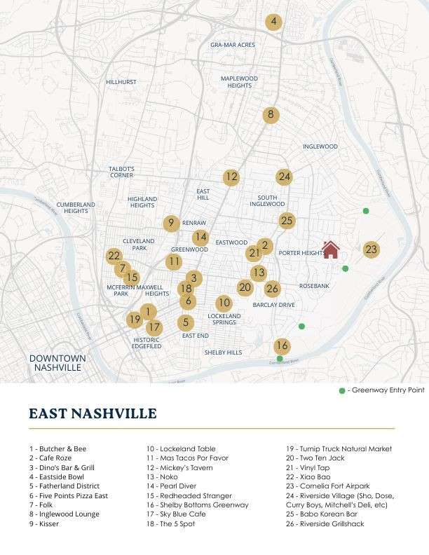 Single-family home in this location at this price?! You're not dreaming! Welcome to the gorgeous Greenside Park development where you'll find a street lined w/ mature, flowering, ornamental trees, sidewalks providing a space to walk & play, & a cul-de-sac design which makes for a quiet, no traffic environment. The home is perched on an easy-to-maintain yard situated in East Nashville's highly-desirable Rosebank neighborhood where you're minutes from some of the best dining & entertainment in the city while being privately tucked away into the tranquility of this Shelby Park adjacent location w/ easy access to Nashville's greenway system & stunning parks. As Nashville's first "green" planned neighborhood, this home boasts energy efficient features in a timeless, craftsman style w/ one of the best layouts in the community. Lovely landscaping & a covered front porch welcome you as you step into the front entry w/ double-height foyer which flows into a formal dining area. The spacious kitchen w/ stone countertops, tile backsplash, & stainless appliances opens into the living room w/ built-in cabinets & bookcases overlooking a flowering tree line behind the home. Generous windows let in excellent natural sunlight, & versatile rooms are ready to accommodate any number of needs. The spacious, main level primary suite has a tiled shower & separate soaking tub, double vanities, & walk-in closet. Upstairs are FOUR additional bedrooms, a full bath w/ double vanities, & laundry room w/ storage space. The charming backyard w/ privacy fence includes garden boxes, lush landscaping, & leveled green space for entertaining or play. The home also includes a fully encapsulated & conditioned walk-in crawlspace w/ great storage space & a tankless, gas hot water heater. Schedule your showing to see all this home has to offer!