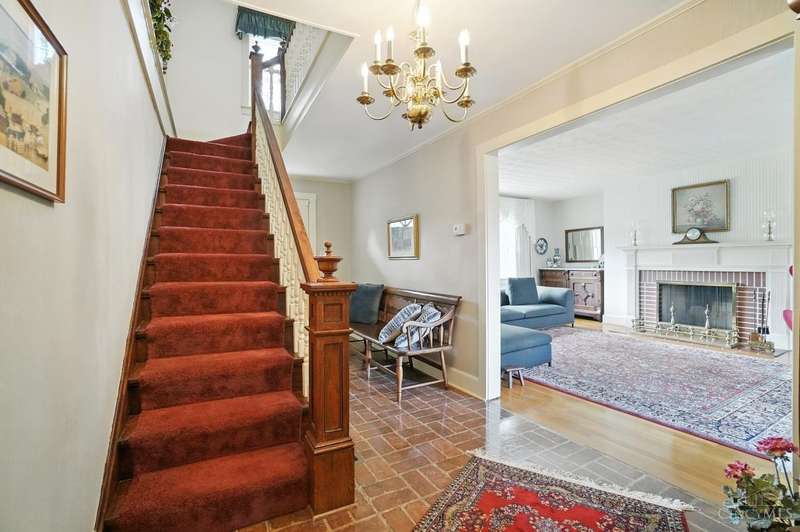 Private, Peaceful and Perfect! This timeless, historic, impeccably- maintained home is situated on over four acres of rolling land with breathtaking views & a running creek. Spring Street features an oversized, detached three-car garage with spacious workshop, a generously-sized pole barn and also a shed for storage. The home's spacious light-filled interior features an open foyer, grand staircase, gleaming hardwood floors, crown molding, a delightful living room with wood fireplace and wall of windows. The light-filled family room features a beautiful gas fireplace and built-ins and adjoins a lovely, warm eat-in kitchen with wood cabinetry, granite and stainless appliances. The 1st floor also includes a full-service laundry including washer & dryer and partial bath. The second floor offers two spacious bedrooms with a beautiful, updated full bath. Escape to your own tranquil private oasis in this old-world-charm countryside property. You'll feel like you're on vacation every day!