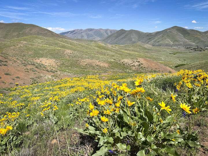 Spacious 5-acre lot with mountain views in all directions, this location delivers access to public lands, bike and hiking trails, and skiing across the street at Rotarun. Country peace & quiet, yet under 3 miles to the heart of Hailey. Horses are allowed. The HOA fee covers community well water domestic+irrig. Seasonal Wilson Creek on the eastern end of the property. Free Rotarun family pass.