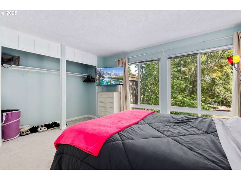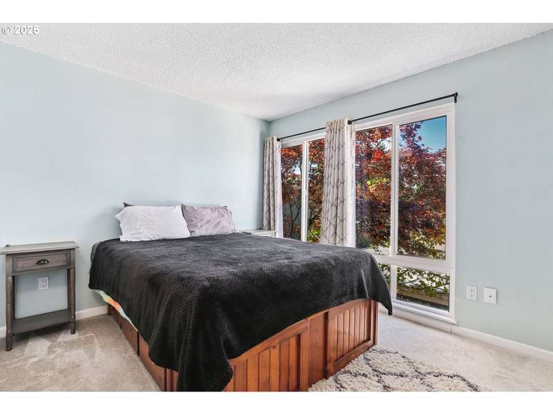 Ideally located near the scenic 185th entrance, this community offers a park-like setting with acres of trails, a private pond, pool, hot tub, sauna, tennis courts, pickleball, gym, playground and clubhouse. Inside, you'll find a new furnace and A/C, along with updated flooring on the main level. The upstairs features a spacious primary suite with floor-to-ceiling windows overlooking lush green space, plus a second bedroom with access to a full bath. A convenient half bath is located on the main floor for guests. Enjoy outdoor living in the large front courtyard—perfect for barbecues, entertaining, or simply relaxing. A covered carport and extra storage are also included. Located close to Tanasbourne, Nike, Intel, and with quick freeway access, it's a prime spot. The HOA covers water, sewer and garbage.