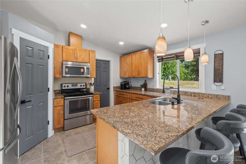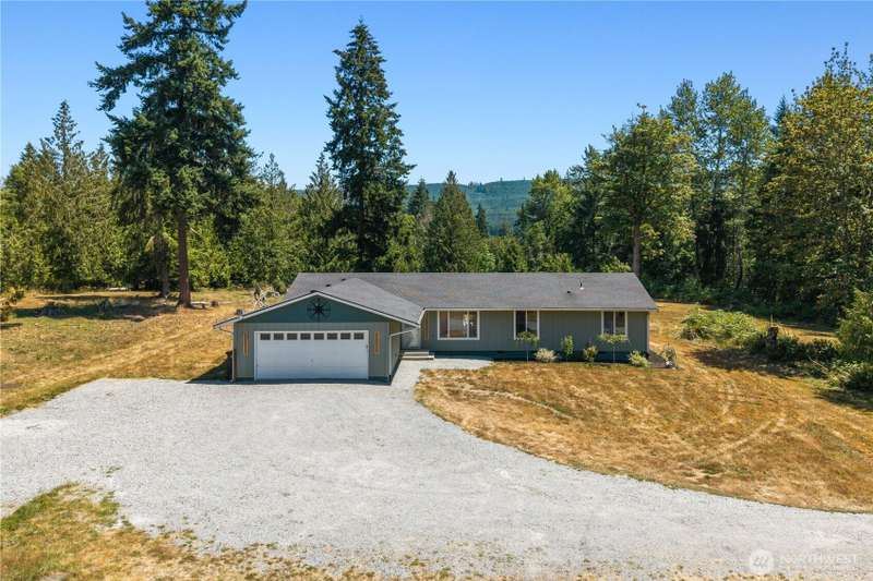 Beautifully remodeled rambler, nestled on 5 acres of serene & usable land. Mostly cleared and fully fenced, this property is ideal for equestrian enthusiasts, a hobby farm, or other animals. A gated entry ensures privacy, while the stunning open-concept interior boasts vaulted ceilings, creating a bright and airy living space. The kitchen shines with shaker-style cabinets, stainless steel appliances, and granite countertops. The luxurious master suite includes a spa-like 5-piece bath with a large soaking tub and custom tile work. Step outside to a spacious deck, perfect for entertaining or soaking in the breathtaking mountain views. With ample space for a shop and all your toys, and no HOA restrictions, this is the perfect opportunity.