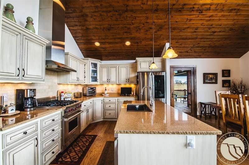 Mountain views, grass swaying in the fields, and Montana Living at its finest. Enjoy vaulted ceilings, epic views, 4 bedrooms, 3 baths, a fully finished basement, custom high end features and additions. The main level has 3 bedrooms, 2 bathrooms, and an open layout. The kitchen features quartz counter tops, new appliances including a Wolf Gas range, 2 ovens, beautiful wood cabinets, and large pantry. Unwind downstairs in the large family room with surround sound, pool table, bar, home gym, and large bedroom/den w/ walk in closet. The neighborhood features good sized lots and running irrigation creeks leaving space to breath. This home sits atop the East Bench, just 15 minutes from the vibrant community of Red Lodge. Red Lodge is known for its outstanding recreation, historic downtown, and friendly and active community. Enjoy the Montana lifestyle from the comfort of your own home.